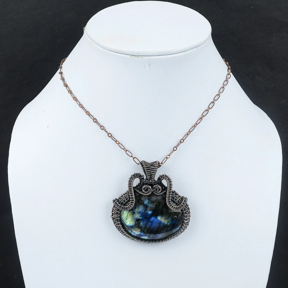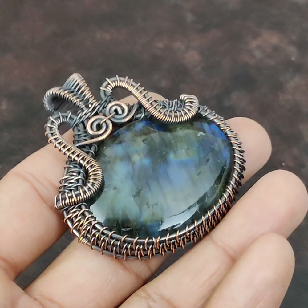 Note : Due to the natural formation of this gemstone. Slight variation in design and color are to be expected. Welcome to Silver Creation Mothers day Sale Labradorite Gemstone Wire Wrapped Sister Pendant Jewelry Copper Handmade Pendant, Wire Wrapped Pendant, Wire Wrapped Jewelry, Copper Pendant, Copper Wire Pendant, Wrapped Jewelry, Wire Wrap Pendant, Wire Wrap Jewelry SKU : FWP-536 Stone Shape : Oval Metal Purity : Unknown Copper Length : 59 Millimeters Width : 56 Millimeters Copper has been used for jewelry making for thousands of years, dating back to ancient civilizations such as the Egyptians, Romans, and Aztecs. Copper was valued for its beauty, versatility, and durability, and was often used to make everything from jewelry and coins to cookware and tools. In addition to its historical significance, copper jewelry also offers several benefits. Copper is a natural conductor of heat and electricity, which makes it ideal for energy healing and therapeutic purposes. Wearing copper jewelry is believed to have various health benefits, such as improving circulation, reducing inflammation, and boosting the immune system. Some people also believe that copper jewelry has the ability to balance energy and improve mood. For Mother's Day Gift For Father's Day Gift For Promise For Valentine' Day For Halloween Party For Christmas Day Gift For New Year Party For Mom For Her If you can't find the information you need or need some advice for your design? Feel free to contact us. We are fast to reply :) All our work is made by hand with Love and Care in our workshop Thank you so much for visiting and hope you enjoy shopping with us Silvercreations is committed to delivering the best quality sterling silver jewelry to customers. As a handmade jewelry manufacturer, we offer an extensive selection of copper gemstone jewelry that showcases the brilliance of our craftsmanship. We are an experienced handmade jewelry supplier with expertise in embellishing gemstones to suit every style. We offer you the liberty to create your jewelry ensemble with sparkling, earthy, and pure gemstones. Our Talented artisans masterfully handcraft each piece of jewelry you see here. Our pieces are made with genuine gemstones.