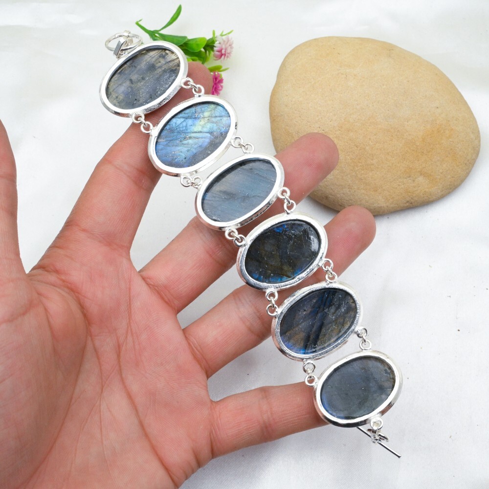 Main Stone Color:BlueCharm Type:Same As PictureSecondary Stone:LabradoriteCollection:HandmadeCountry of Origin:IndiaDiamond Color Grade:N/AChain Type:N/AMain Stone Length:N/AMain Stone:LabradoriteTotal Carat Weight:10 carat and aboveFeatures:AdjustableCertification:N/ABrand:HandmadeStyle:ChainItem Length:8 inches with Adjustable ChainColor:SilverMain Stone Shape:OvalBase Metal:Sterling SilverTheme:Beauty, Bohemian, Ethnic, Halloween, LoveSetting Style:BezelMetal:Sterling SilverMetal Purity:925Number of Diamonds:N/AMaterial:GemstoneMain Stone Treatment:Not EnhancedCut Grade:ExcellentNumber of Gemstones:6Type:BraceletShape:Same As PictureDiamond Clarity Grade:N/AClosure:ToggleColored Diamond Intensity:N/ACountry/Region of Manufacture:IndiaMain Stone Width:N/AOccasion:Anniversary, Birthday, Christmas, Engagement, Mother's Day, Valentine's Day, WeddingMain Stone Depth:N/AMain Stone Creation:Lab-Created