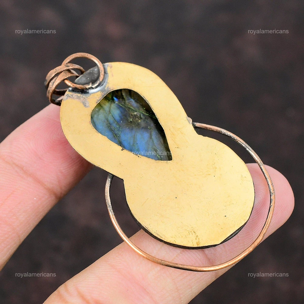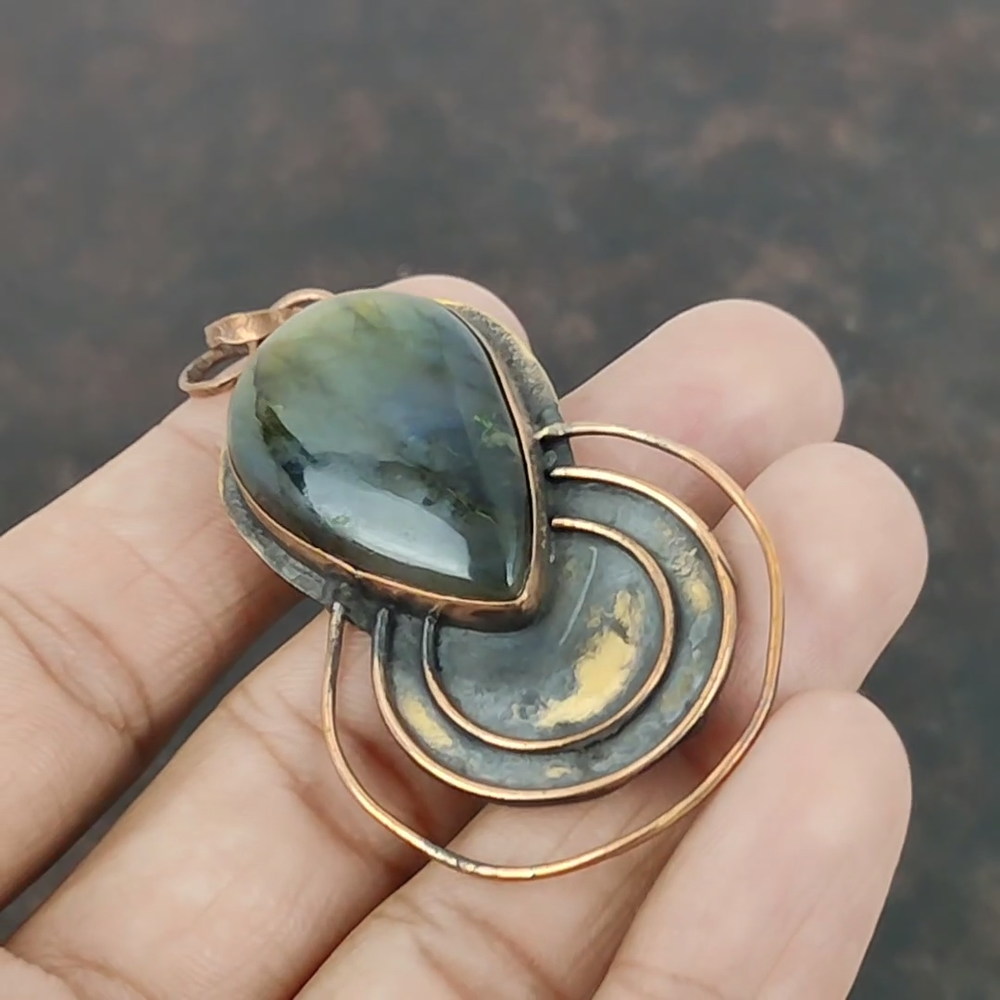 Note : Due to the natural formation of this gemstone. Slight variation in design and color are to be expected. Welcome to Royalamericans Mothers day Deal Labradorite Stone Copper Wife Handmade Art Deco Pendant Jewelry Handmade Pendant, Wire Wrapped Pendant, Wire Wrapped Jewelry, Copper Pendant, Copper Wire Pendant, Wrapped Jewelry, Wire Wrap Pendant, Wire Wrap Jewelry SKU : WP-913 Gemstone : Labradorite Stone Shape : Pear Metal Purity : Unknown Copper Length : 66 Millimeters Width : 39 Millimeters Copper has been used for jewelry making for thousands of years, dating back to ancient civilizations such as the Egyptians, Romans, and Aztecs. Copper was valued for its beauty, versatility, and durability, and was often used to make everything from jewelry and coins to cookware and tools. In addition to its historical significance, copper jewelry also offers several benefits. Copper is a natural conductor of heat and electricity, which makes it ideal for energy healing and therapeutic purposes. Wearing copper jewelry is believed to have various health benefits, such as improving circulation, reducing inflammation, and boosting the immune system. Some people also believe that copper jewelry has the ability to balance energy and improve mood. For Mother's Day Gift For Father's Day Gift For Promise For Valentine's Day For Halloween Party For Christmas Day Gift For New Year Party For Mom For Her If you can't find the information you need or need some advice for your design? Feel free to contact us. We are fast to reply :) All our work is made by hand with Love and Care in our workshop Thank you so much for visiting and hope you enjoy shopping with us Royalamericans is committed to delivering the best quality sterling silver jewelry to customers. As a handmade jewelry manufacturer, we offer an extensive selection of copper gemstone jewelry that showcases the brilliance of our craftsmanship. We are an experienced handmade jewelry supplier with expertise in embellishing gemstones to suit every style. We offer you the liberty to create your jewelry ensemble with sparkling, earthy, and pure gemstones. Our Talented artisans masterfully handcraft each piece of jewelry you see here. Our pieces are made with genuine gemstones.