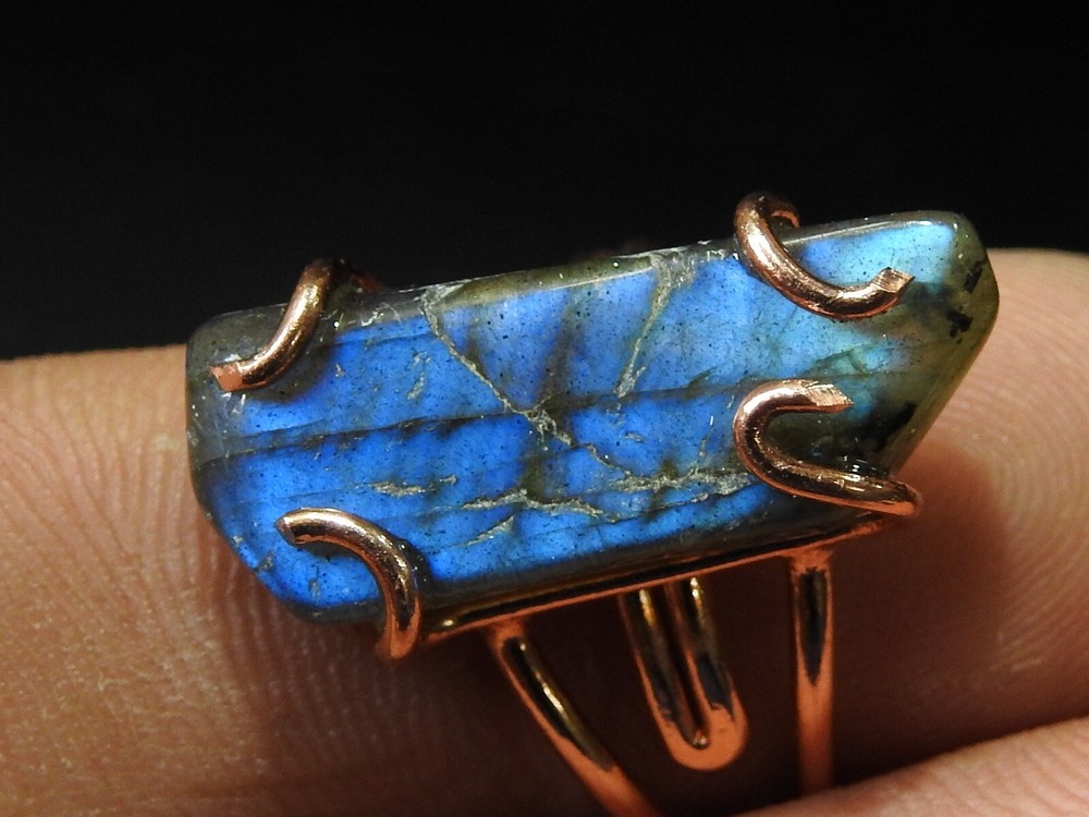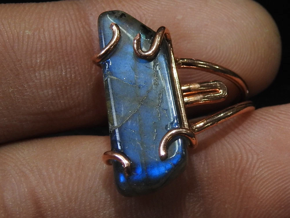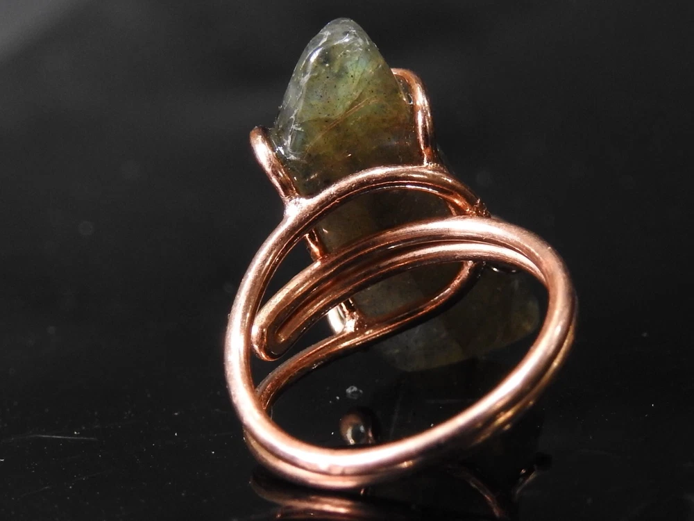 Labradorite rough ring with multi flash fire in copper wire wrap jewelry