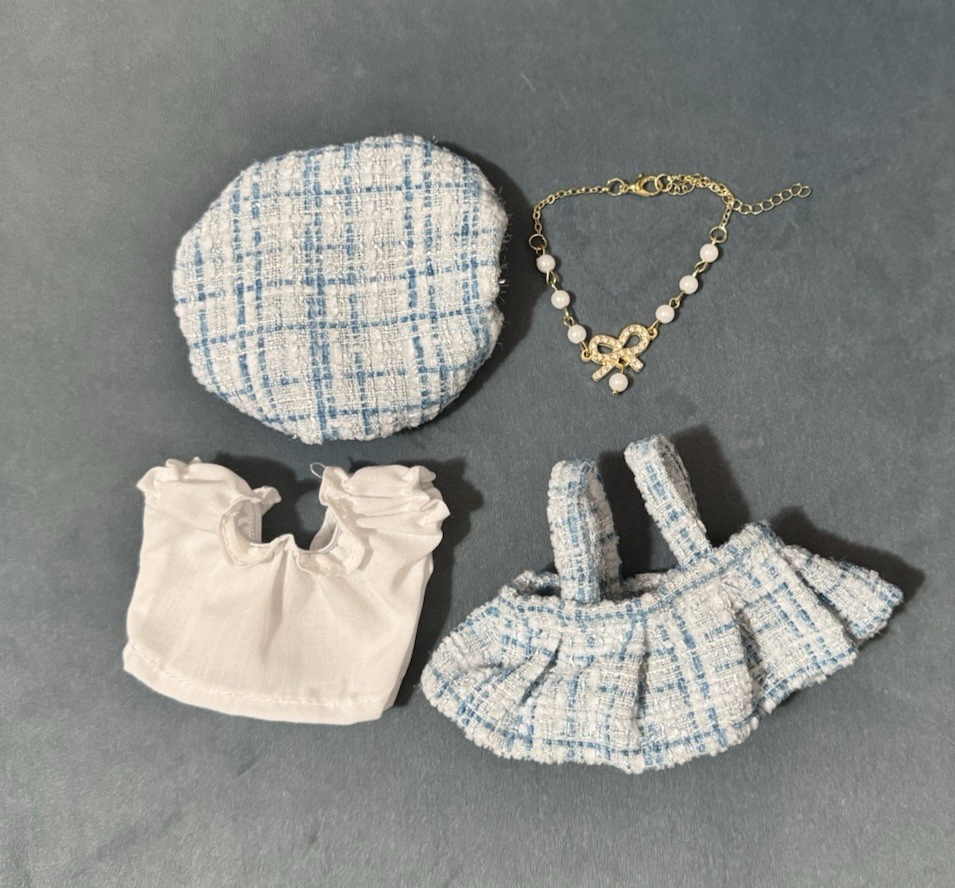 Labubu OOTD Blue Dress with Hat and Necklace Outfit Only - No Doll 100 % Brand New