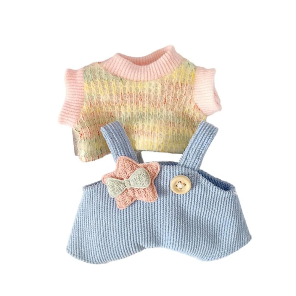 Adorable Design: These cute plush doll clothes feature fun and stylish designs that will make your doll look extra charming and fashionable. Perfect Fit: Designed specifically for Labubu dolls, these doll clothes are tailored to fit perfectly and accentuate your doll's unique features. High-Quality Materials: Made with premium materials, these plush doll clothes are soft, durable, and easy to clean, ensuring long-lasting enjoyment for your little one. Collectable Set: Add these doll clothes to your collection of accessories for endless mix-and-match options, making playtime even more fun and creative. Ideal Gift: Whether for a birthday or special occasion, these plush doll clothes make a thoughtful and delightful gift for any Lbb doll enthusiast, bringing joy and excitement to their playtime.