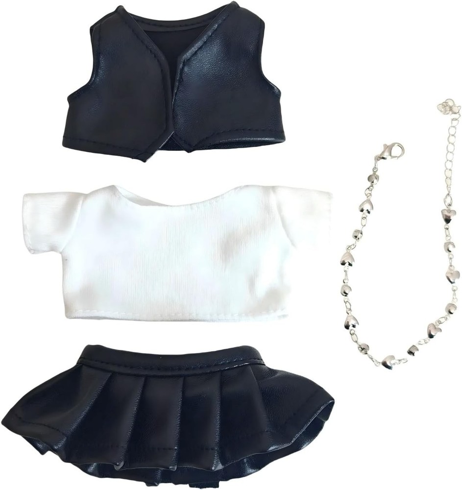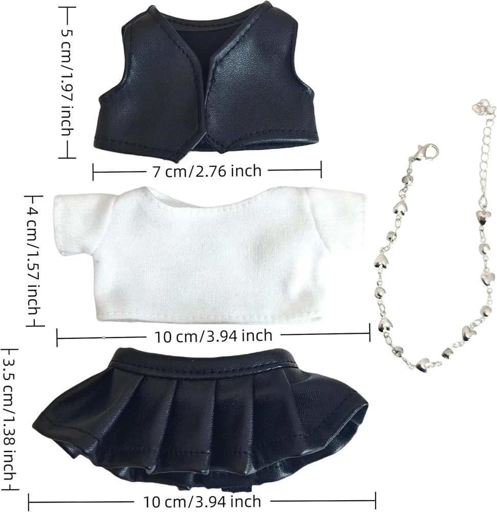 Product Description Enhance your doll’s wardrobe with our 4-piece punk-style outfit set, meticulously crafted for 1st, 2nd, and 3rd generation 17cm dolls. This ensemble combines edgy fashion with practical functionality, featuring a stretchable cotton T-shirt, faux leather vest and pants, and a nickel-free heart necklace. The adjustable design ensures effortless dressing while maintaining a snug fit. Crafted from premium materials, the soft cotton T-shirt provides breathable comfort, while the PU leather vest and pants offer lightweight durability without compromising safety. The nickel-free necklace adds a chic accent, perfect for photo shoots, creative displays, or imaginative play. Whether you’re a doll collector or hobbyist, this set unlocks endless mix-and-match possibilities – from rebellious punk to casual everyday looks. Package Includes: 1 x White Cotton T-Shirt (stretchable fabric) 1 x Black PU Leather Vest (lightweight & adjustable) 1 x Black PU Leather Pants 1 x Heart-Shaped Necklace (nickel-free) 1 x glasses 1 x black shoes 1 x black hat Notes: Slight variations may occur due to manual measurements. Colors may differ slightly from images due to lighting/monitor settings.