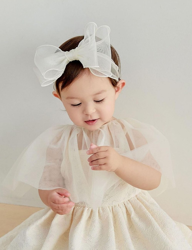 This baby girl headband is made of soft lace fabric, which is comfortable and skin-friendly, and has a beautiful flower pattern. The headband is suitable for babies aged 0-36 months, and can be worn as a photo prop, birthday party gift, or everyday accessory. The elastic design of the headband makes it easy to wear and take off, and it will not leave any marks on your baby's head. If you have any questions about the headband, please feel free to , we will provide you with the best service. Lace flower headband for baby girl: The lace flower headband is made of high-quality lace and elastic, soft and comfortable, skin-friendly, breathable, lightweight and durable, suitable for babies from 0 to 36 months old. Newborn shower birthday party gift: The lace flower headband and lace bow headwrap are suitable for birthday parties, photo shoots, ceremonies, daily wear and any other special occasions. They are beautiful gifts for babies, and will make your baby more cute and beautiful. Universal size: The lace flower headband and lace bow headwrap are one size fits all, with an elastic band design that can be adjusted to fit different head sizes, making them suitable for most babies and toddlers. Occasions: The lace flower headband and lace bow headwrap are suitable for various occasions, such as baptism, christening, first communion, birthday parties, photo shoots, ceremonies, daily wear and any other special occasions. Easy to wear: Our baby headbands and bows are easy to wear. They simply slip on your baby's head and stay in place all day. The elastic band is stretchy and durable, ensuring that the headband will not slip off.