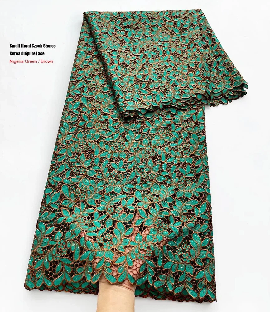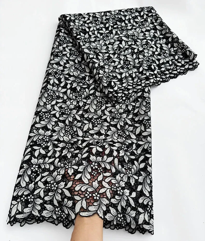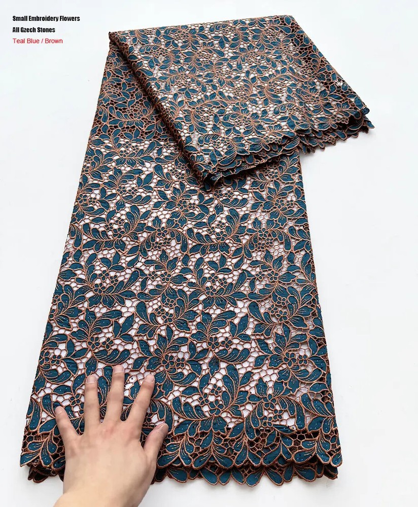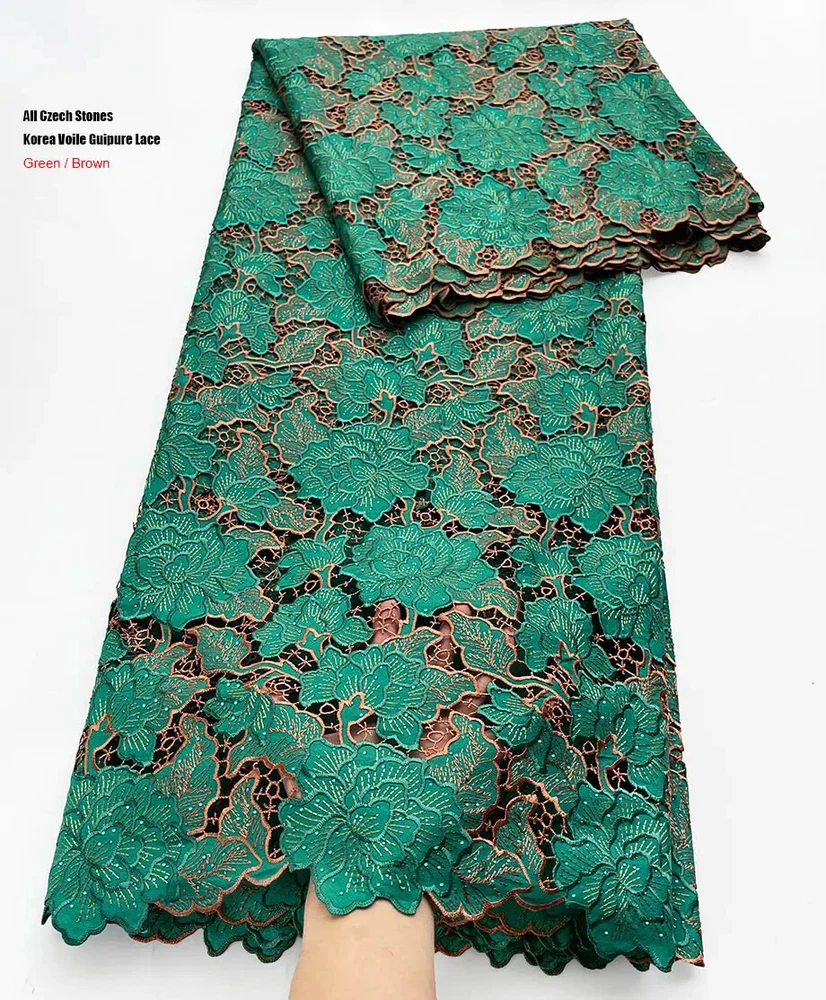 Length: 5 yards (4.57meters) Width: 51- 52 inches ( about 130 cm ) Features: Big Rich Voile Mix Guipure Use for: All Occasions Material: Cotton / Silk / Polyster Shipping: Fedex/ DHL / Post Mail Weight: 1.4 - 1.5 kgs per 5 yards Touch feeling: Soft & Super Neat Condition: Brand new and unworn Quality: Premium Quality Guaranteed Yes!! Hannlin Royal- Professional. Better Quality