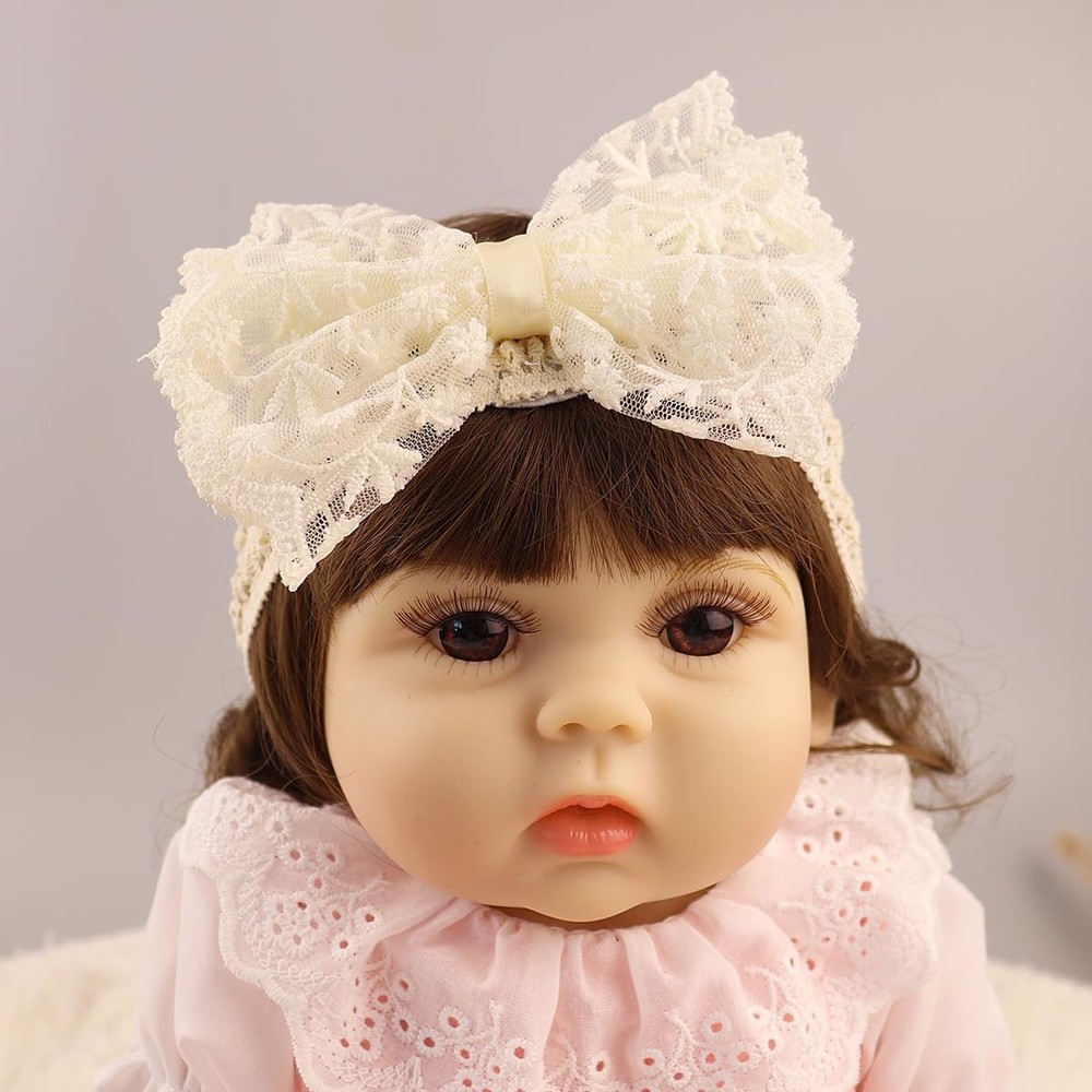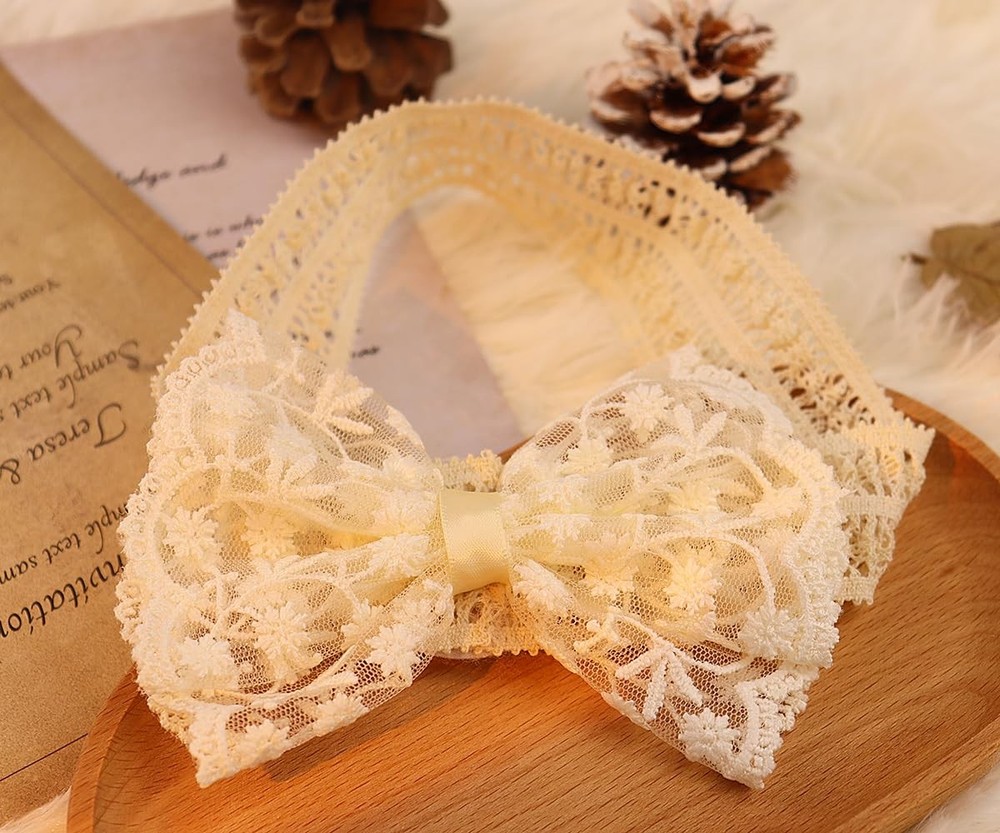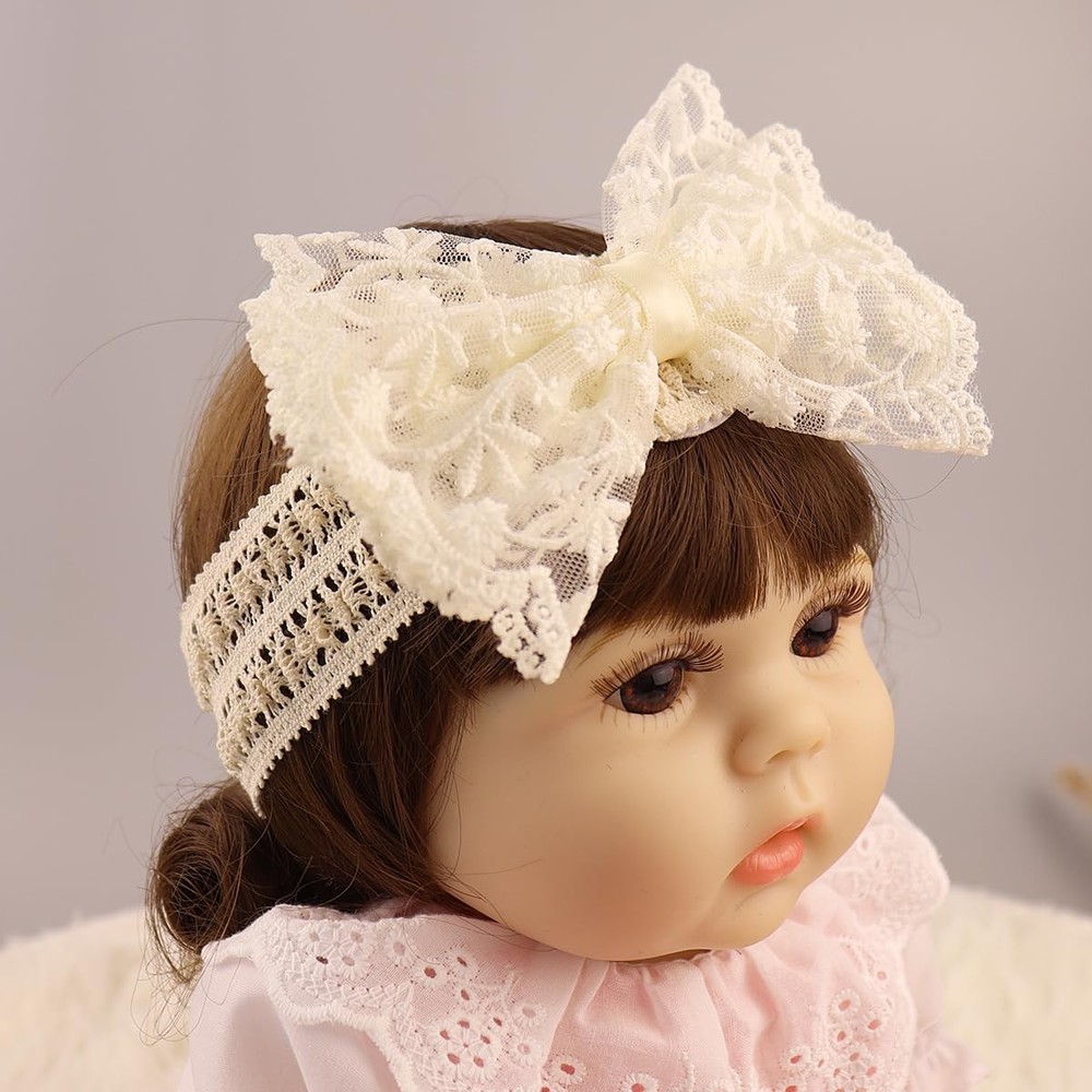 Floral Lace Hair Bow for Baby Girls Soft Stretch Headband for Newborns to Tod...