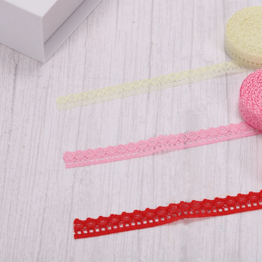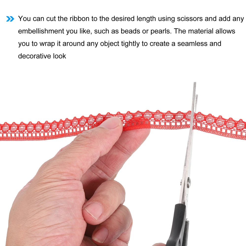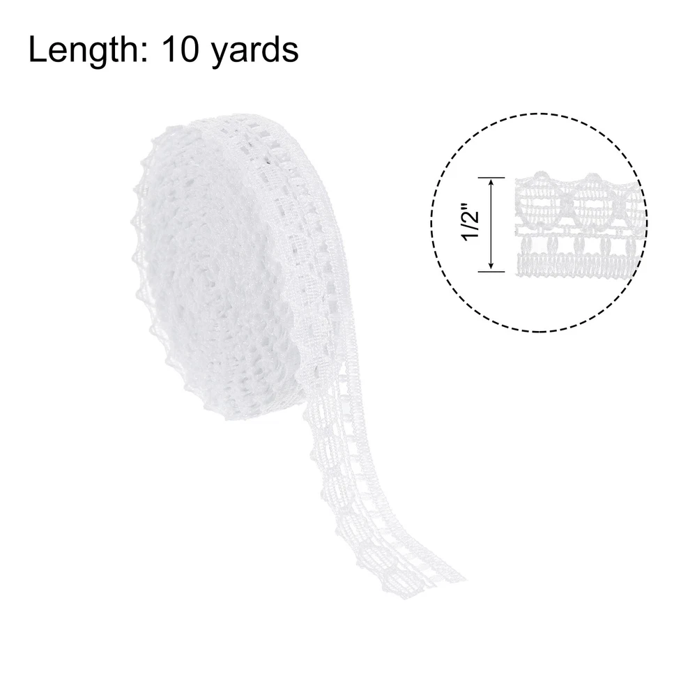 What is this? This lace ribbon is suitable for various DIY projects such as gift wrapping, headbands crafting, wedding decorations, and more. What will I get? Lace ribbon x 1; Length: 10 Yards; Width: 1/2 Inch; Color: White; Are there any advantages of the product? The lace ribbon is comfortable and soft to the touch, allowing it to stretch easily for easy application in different objects and surfaces. This product is versatile and can be used for multiple purposes, such as creating hair accessories, decorating home items and clothes. How to use it? You can cut the ribbon to the desired length using scissors and add any embellishment you like, such as beads or pearls. The material allows you to wrap it around any object tightly to create a seamless and decorative look. What should I notice? Handle the ribbon carefully to prevent it from tearing. It is recommended to store the ribbon in a dry and cool place to ensure its quality and longevity.