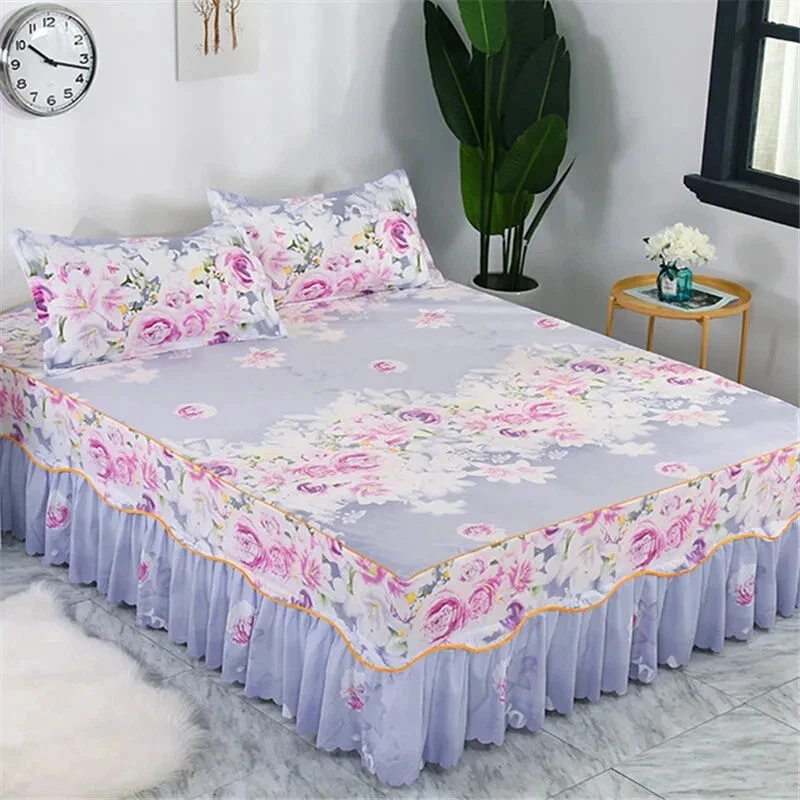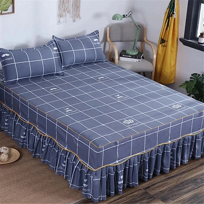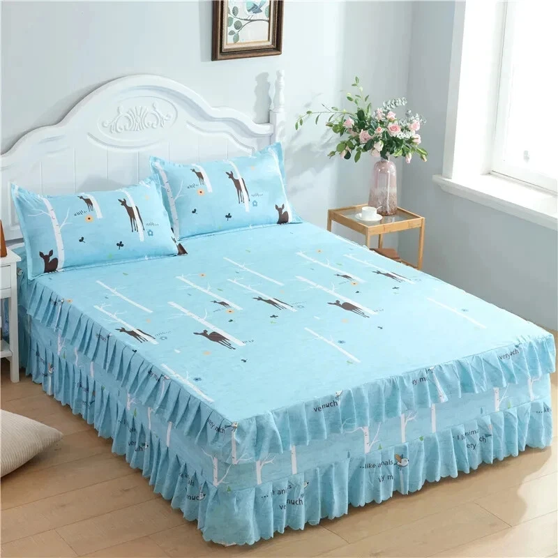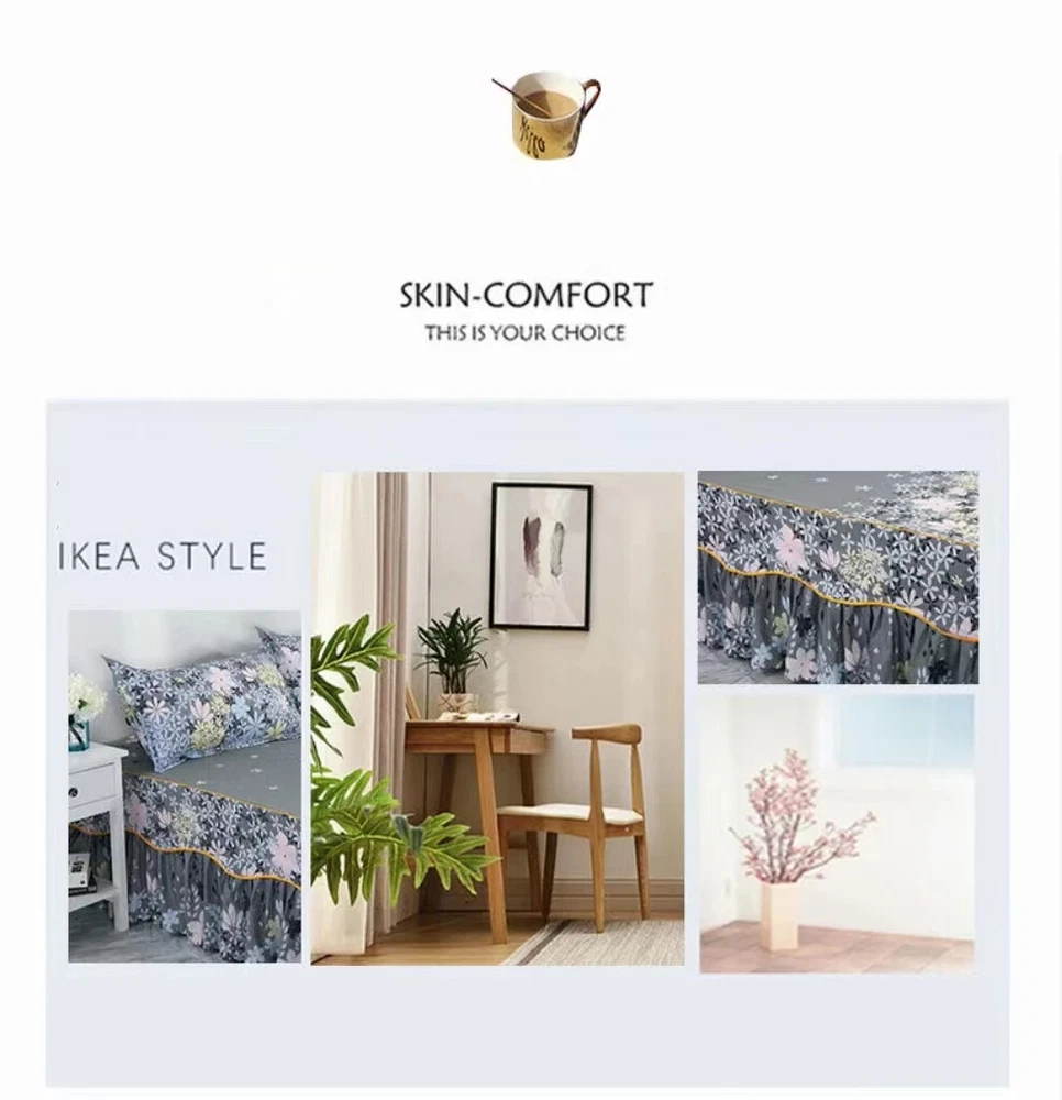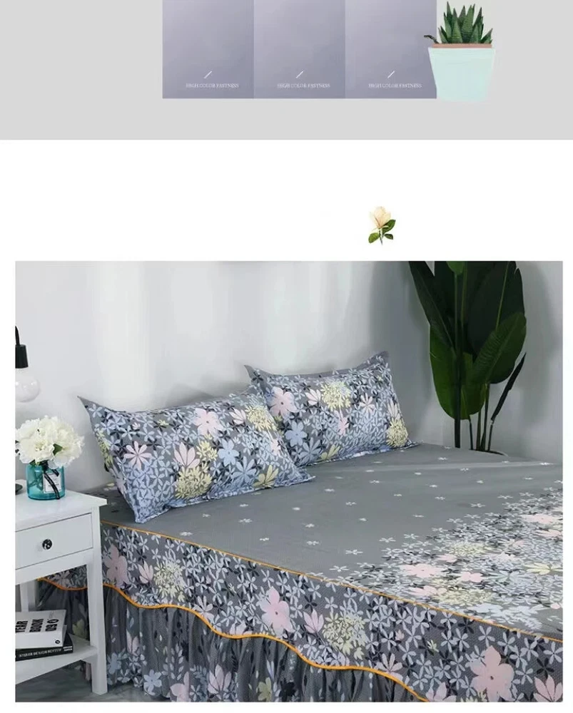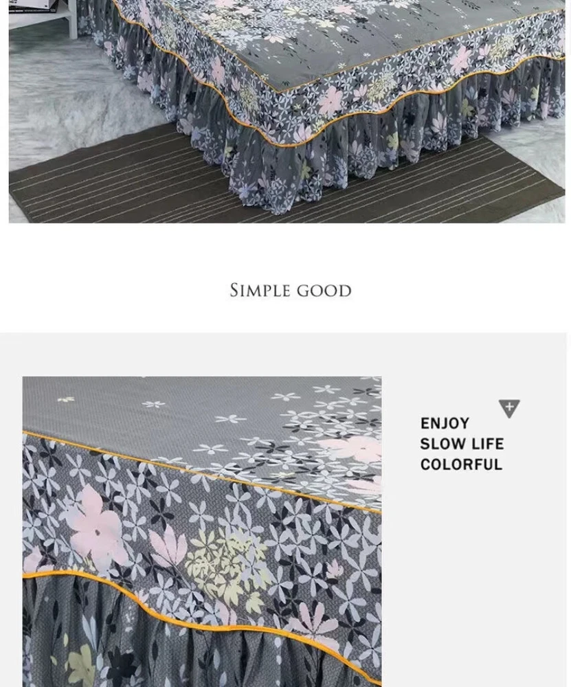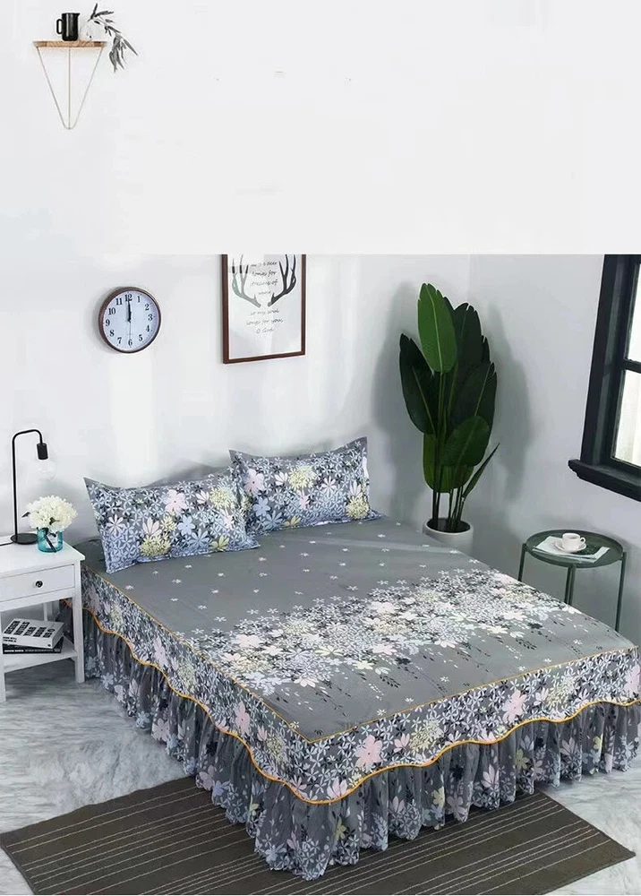 MULTIPLE SIZES(Width x Length ) 120x200cm / 47x79 inch (Full/Double Size) 150x200cm / 59x79 inc 160x200x30cm / 63x79x12 inch 180x200cm / 71x79 inch 180x220cm / 71x87inch 200x220cm / 79x87inch Pillowcase Free Send Thickened brushed bed skirt Fashionable and bright, high quality bed skirt Life is not compromised, only the original design and careful selection of materials are worthy of your home Skin-friendly soft, care for the skin, moisture absorption and breathable, natural health, no shrinkage, not breathable Selected high-quality brushed fabric, soft and comfortable to fit the skin, breathability and moisture absorption, comfortable throughout the night From this moment, have a different kind of sleep Raised bed skirt design, skirt height of about 40cm, soft and comfortable, soft touch Eco-friendly printing and dyeing Not easy to fade, not easy to pilling, high color fastness, no color loss, no formaldehyde Product Information Washable and durable, soft and breathable, green Raised bed skirt design, beautiful and generous, warm and romantic Active printing and dyeing process, fashionable and bright colors, safe and healthy With a wide edge pillowcase, exquisite and beautiful, strong and durable, as new for a long time With non-slip elastic band, firmly fixed mattress, peace of mind sleep Lace Trim Trilateral,Heightening,Bed Skirt Pillowcase Three-piece Set,Anti-slipn Mattress Cover,Soft Comfortable,Cotto Double