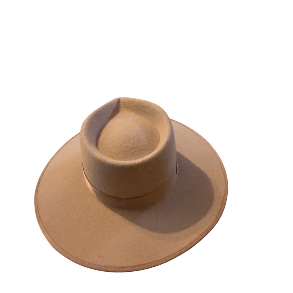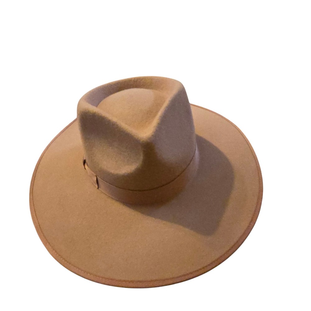 This is a Lack Of Color Teak Rancher Hat in light brown, made of wool with a fedora style. It is suitable for a cowgirl look with a Western theme, perfect for various occasions like travel, weddings, parties, casual wear, work, or business settings. The hat is designed in a Texas cowgirl fashion, ideal for the winter, fall, and spring seasons.