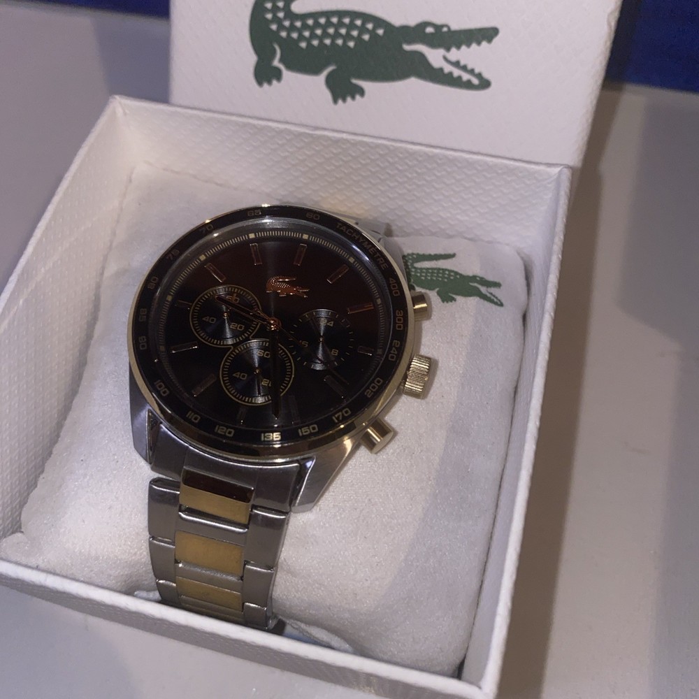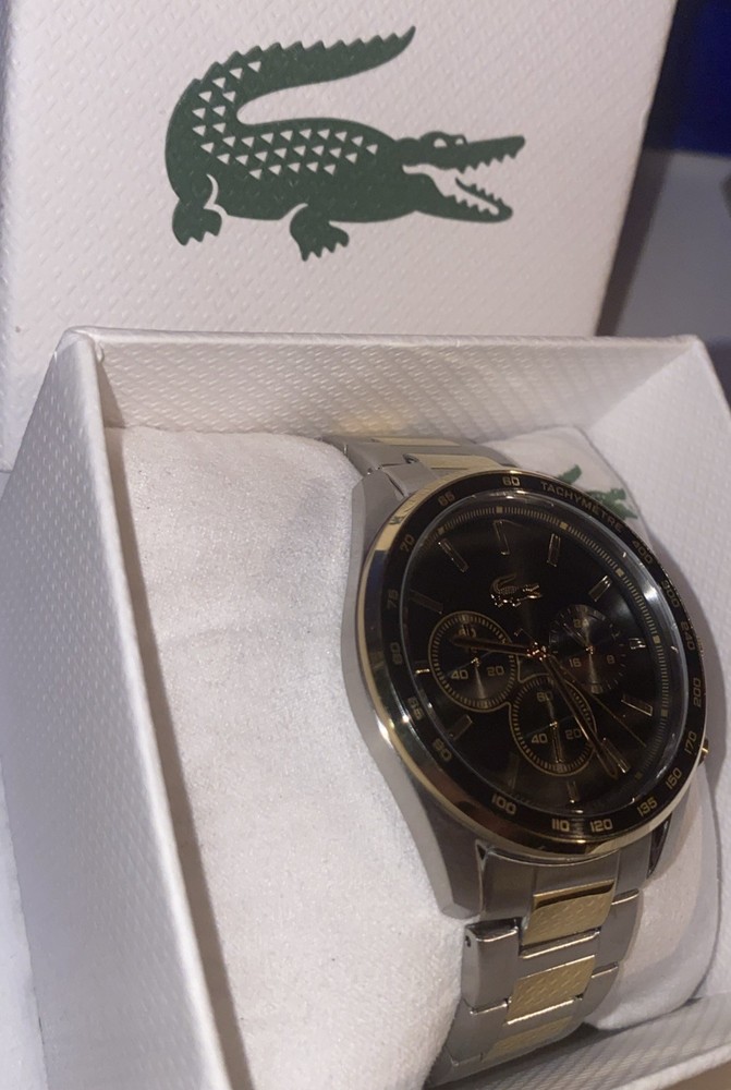 The Lacoste Boston Men's Black Dial Quartz Watch 2011348 is a classic wristwatch designed for men with a timeless appeal. Featuring a black dial, stainless steel case and bracelet, and a chronograph function, this watch is both stylish and functional. With a water resistance of 50m, this watch is suitable for everyday wear and various activities. The deployment clasp with push button closure ensures a secure and comfortable fit, making it a reliable accessory for any man's collection.