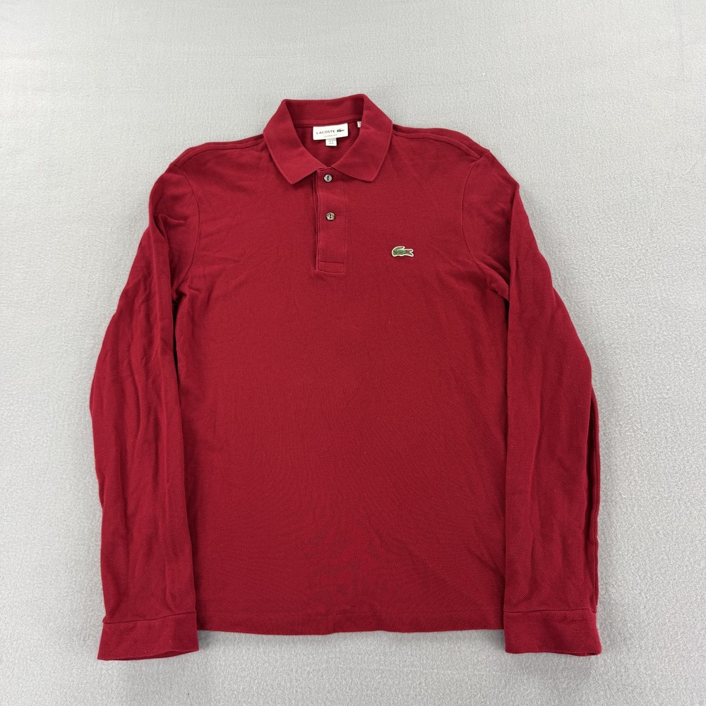 Brand: Lacoste Performance/Activity: Golf, Tennis, Walking, Casual Neckline: Collared Type: Polo Vintage: No Fit: Classic Department: Men Features: Breathable, Collared Seller Notes: “Check below for full description & photos” Material: 100% Cotton Character: Crocodile Size Type: Regular Color: Red Pattern: Solid Sleeve Length: Long Sleeve Size: S