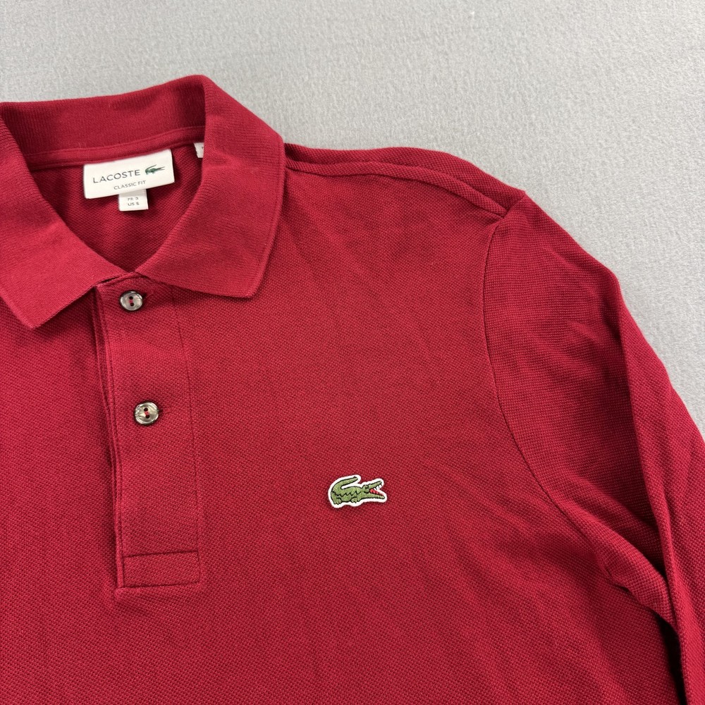Lacoste Polo Shirt Mens Small Red Long Sleeve Classic Fit Crocodile Logo Preppy