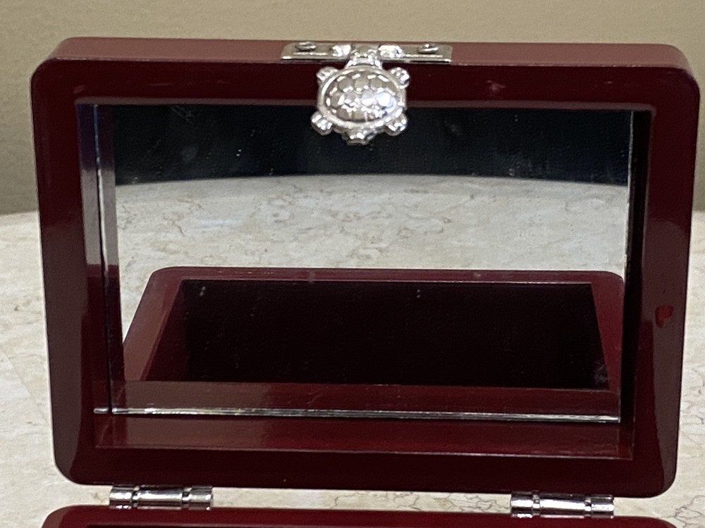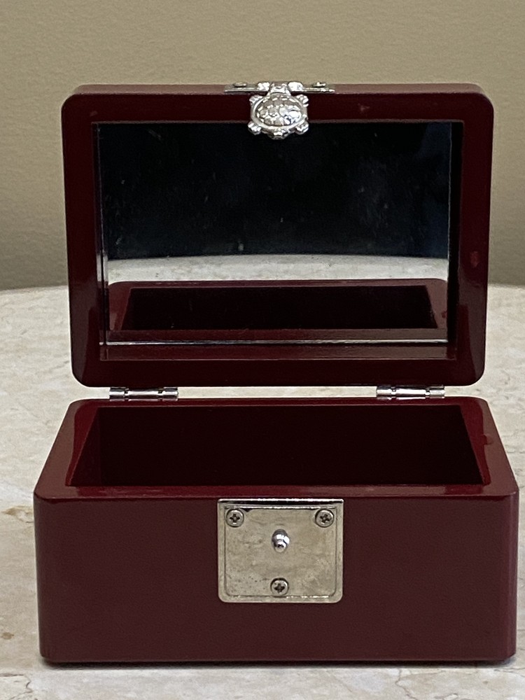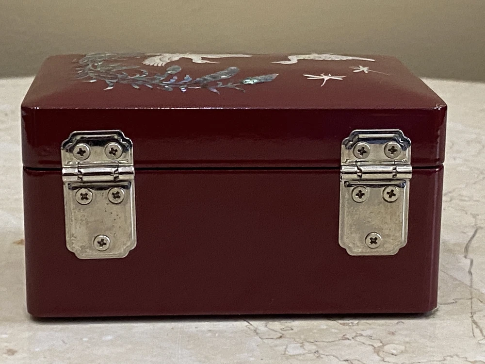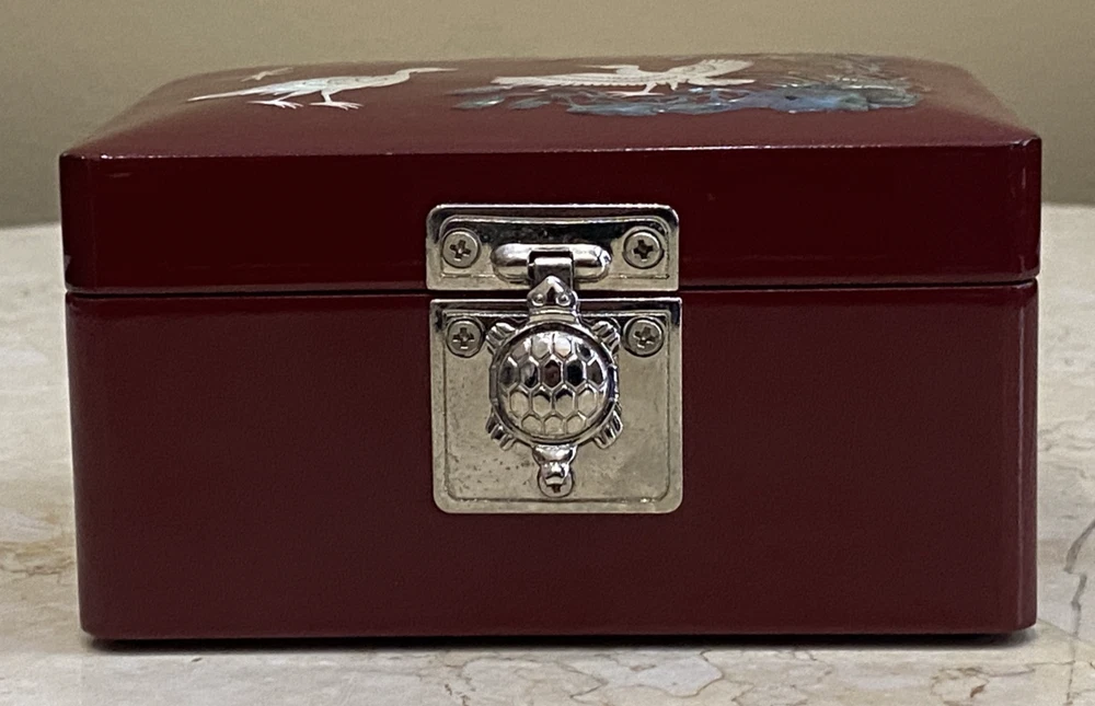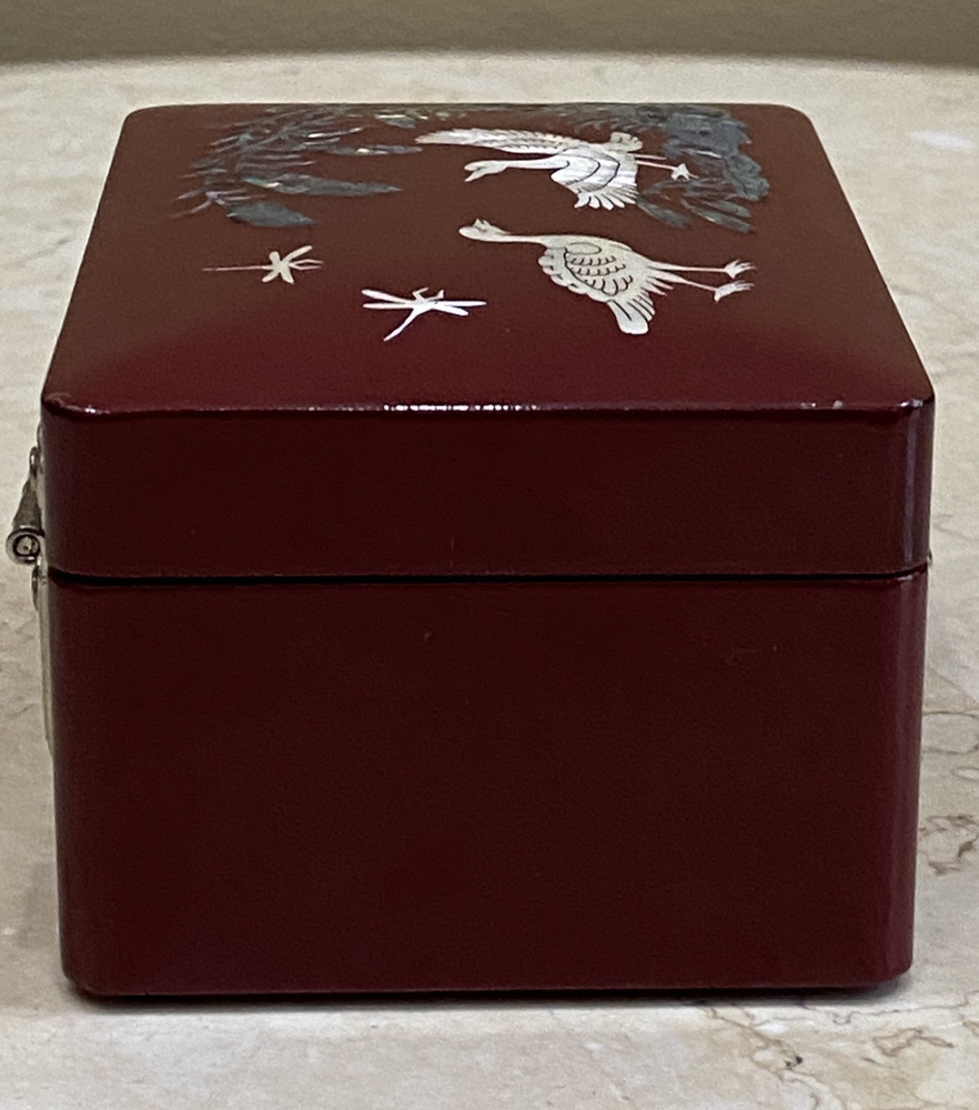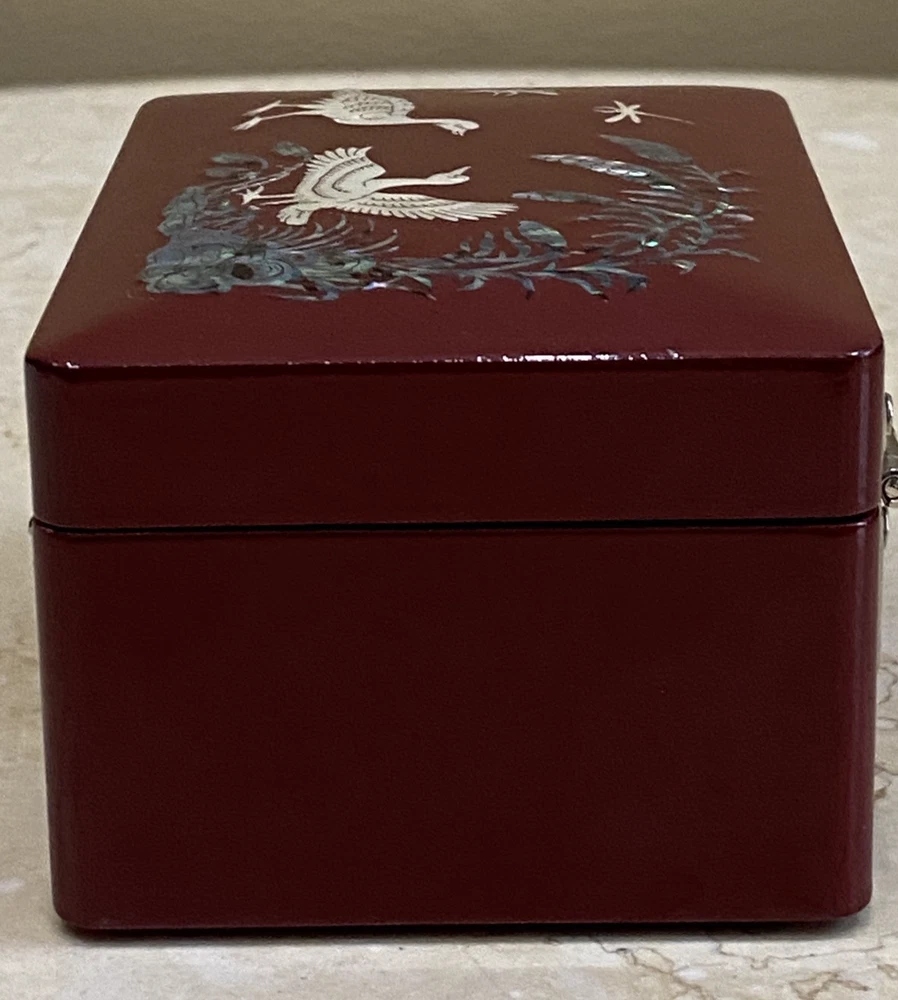 Lacquer Wood Jewelry Box with Mother of Pearl Duck Inlay 4 Inch