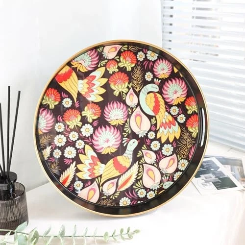 Return Policy Fast Delivery Trusted seller Decorative Serving Tray with Handles, Lacquered Coffee Table Tray for Ottoman, Round Waterproof Platters for Centerpieces, Parties, Living Room, Kitchen Counter Organization Peacock Product Description Versatile & Stylish Design: serving tray with handles is perfect for any setting – from coffee tables to kitchen counters and ottomans. Use it for decoration, serving, or as a centerpiece Convenient for Serving: This tray makes serving at parties and family gatherings easy by reducing trips back and forth. Ideal for food, drinks, and multi-course meals, it helps keep things organized and efficient Sturdy & Waterproof: Made from sturdy plastic, this tray is waterproof and built for everyday use. It’s perfect for both indoor and outdoor settings, including patios and outdoor dining Easy to Stack & Store: Designed to be compact and stackable, the tray saves storage space in kitchens or dining areas. Its practical design makes it easy to store when not in use Multi-Use Functionality: Great for both serving and storage, it doubles as a stylish organizer for vases, candles, or perfumes. Perfect for entryway tables, vanity stations, or as a decorative piece Shipping Returns Payment Shipping Shipping is FREE to all addresses other than APO/PO boxes in the lower 48 states. All our stock ships from US-based warehouses. Shipped via USPS or UPS (depending on location and package weight) Unless stated otherwise, all orders will ship within 24-72 hours of your payment being processed. Check our feedback to see the great reviews of FAST shipping we offer. Returns Seller does not accept returns Payment We currently accept payment via eBay managed payments only. Once payment is cleared, we will dispatch your shipment within 1-3 business days. Please refer to the "Shipping" tab for more information regarding shipping speed to your destination.