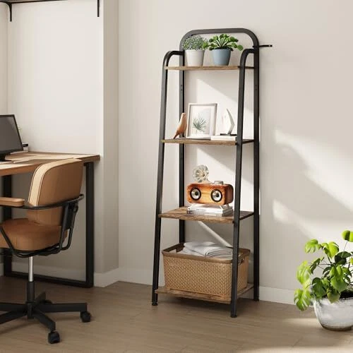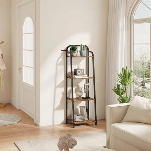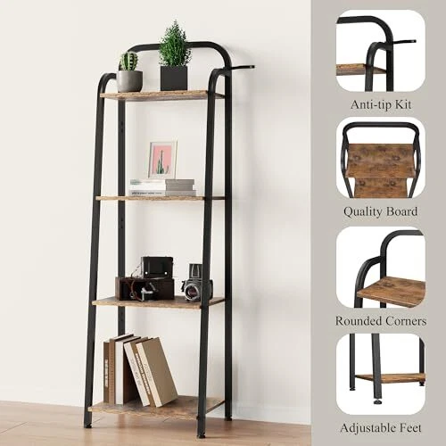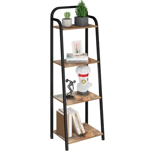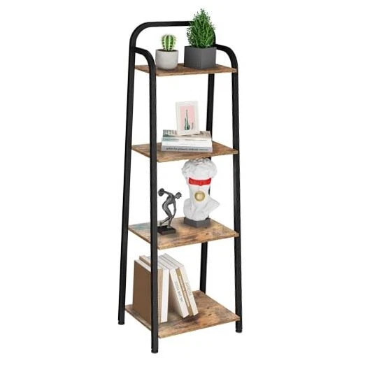 Return Policy Fast Delivery Trusted seller Ladder Shelf, 4 Tier Bookshelf, Narrow Bookcases with Metal Frame, Standing Storage Shelves for Living Room, Home Office, Kitchen, Bedroom, Rustic Brown HKLS1401BR Product Description 【Sturdy and Stable】The ladder bookshelf is made of particle board and thickened metal frame to ensure stability and durability. 4 protective foot pads to ensure stably and protect your floor from scratches. Additional Anti-Tip Kit secures the shelf to the wall 【Versatile Ladder Bookshelf】The bookcase provides the ideal platform to showcase your decorative items. Ideal for placement in the hallway, living room, bedroom, balcony, office, and more. The 4-tier open shelving unit offers ample space for storing books, plants, decor, office supplies, picture frames, or other items 【Elegant Appearance】The unique shape of this bookshelf with its wood panel and black metal frame can be easily paired with almost any type of furniture, and the ladder shelves exude modern elegance that can add interest to almost any room 【Reasonable Spacing】The storage shelf measures 11.8" D x 15.9" W x 49.2" H, occupying minimal floor space while providing ample storage. The spacing between shelves is 12.6 inches, accommodating taller items 【Easy To Assemble】The package includes an easy-to-follow assembly guide, clearly labeled parts, and the necessary assembly tools, making the process simple for you to complete Shipping Returns Payment Shipping Shipping is FREE to all addresses other than APO/PO boxes in the lower 48 states. All our stock ships from US-based warehouses. Shipped via USPS or UPS (depending on location and package weight) Unless stated otherwise, all orders will ship within 24-72 hours of your payment being processed. Check our feedback to see the great reviews of FAST shipping we offer. Returns Seller does not accept returns Payment We currently accept payment via eBay managed payments only. Once payment is cleared, we will dispatch your shipment within 1-3 business days. Please refer to the "Shipping" tab for more information regarding shipping speed to your destination.