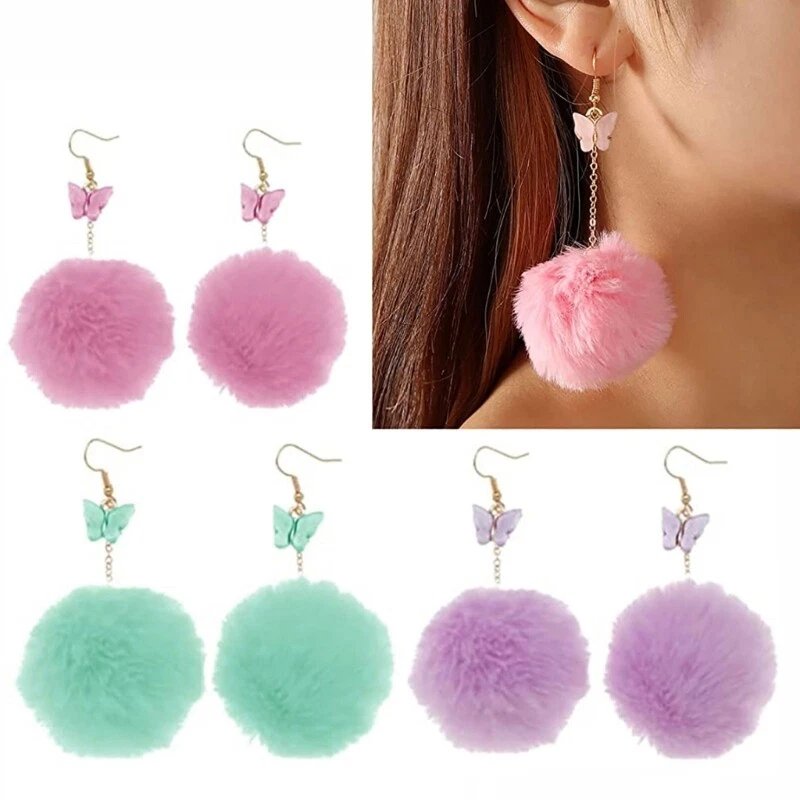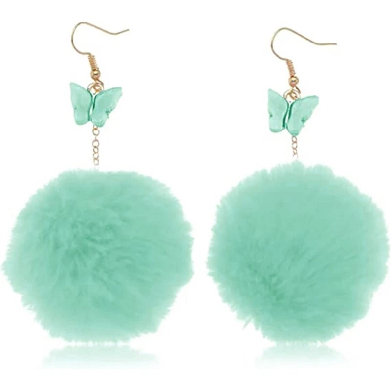 Features: Pom Pom earrings consist of butterflies pendants and balls. Very light in weight, dancing with the wind, you will have a very unique charm when wearing it. Pom hair earrings are handmade, can all your clothes, and are suitable for all scenes. artificial fur and stainless steel, it is comfortable, light, durable and well-made and can accompany you for a long term. These earrings are special gifts for girls, daughters, good couples, sisters or family members. These fashions are suitable for everyday wear and can be used in many occasions, such as Valentine's Day, Christmas, Mother's Day, Thanksgiving Day, Birthday, Wedding, Party, Anniversary, Prom and Leisure Day, which means that everyday life is better. Specifications: Color Blue Stainless Steel+ Plush Size:Approx.4x9.5cm/1.57x3.74in Quantity:1 Pair Package Includes: 1 Pairx Earrings note: Please allow a little error on the size due to manual measurement. The color might exist slightly difference due to different displays.