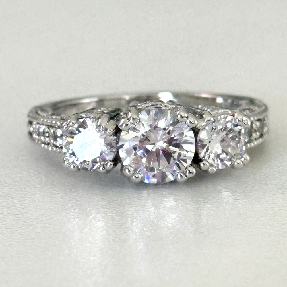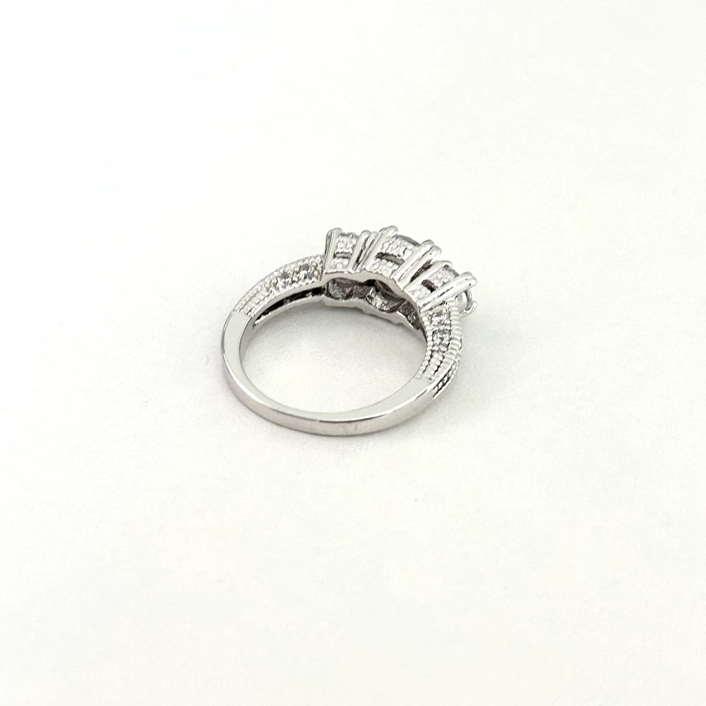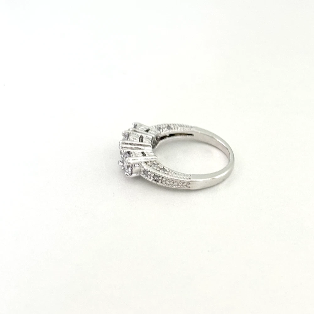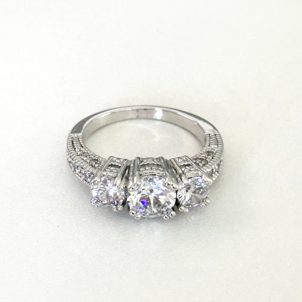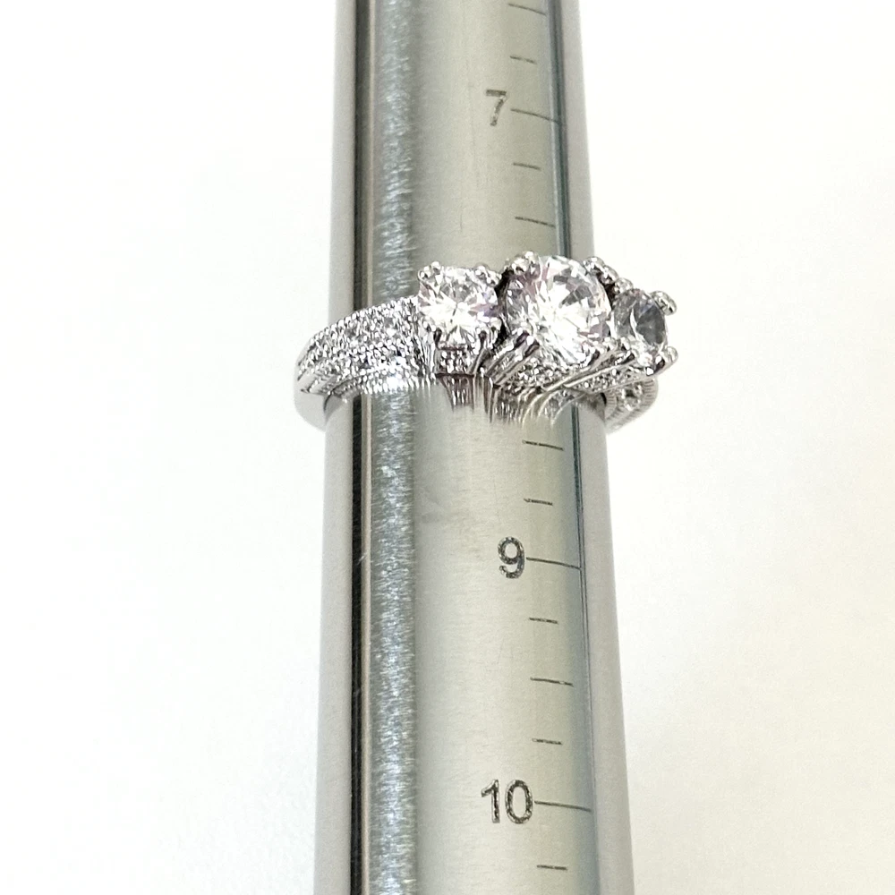 Ladies Clear CZ Three Stone Sparkly Engagement Style Statement Band Ring Size: 8 Stone size: 7.5mm Excellent condition. - Fast shipping, I ship the same or next business day! I also combine shipping. - Thank you so much for shopping with me and please check out my other jewelry listings, I post new pieces daily!