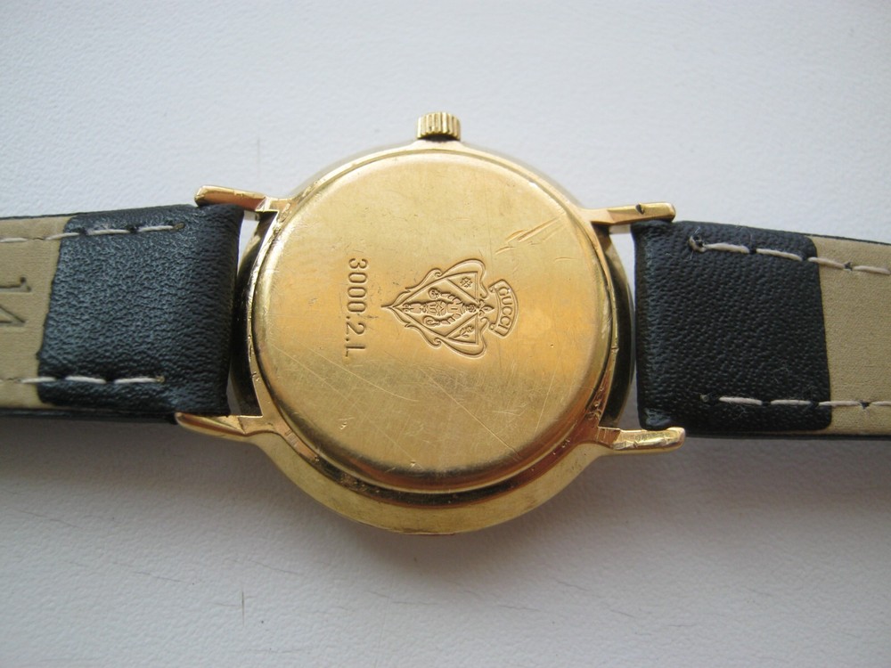 the watch was in very poor condition (last photo) - the mechanism is replaced but new, 100% similar (except for the Gucci marking, of course) - dial defects are tinted, it is noticeable if you look closely - new hands - new glass - new leather belt significant damage near the crown the watch has a lot of small defects, but overall, it's much better than it was case diameter - 26 mm without crown
