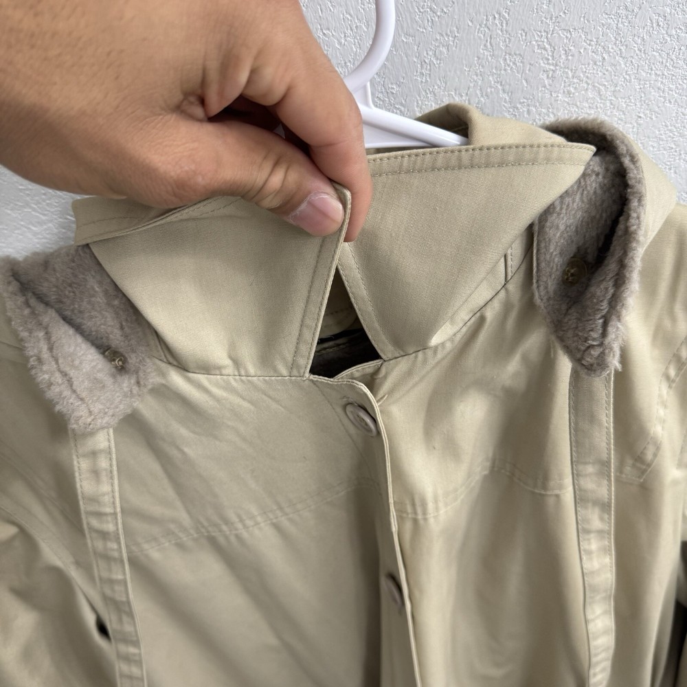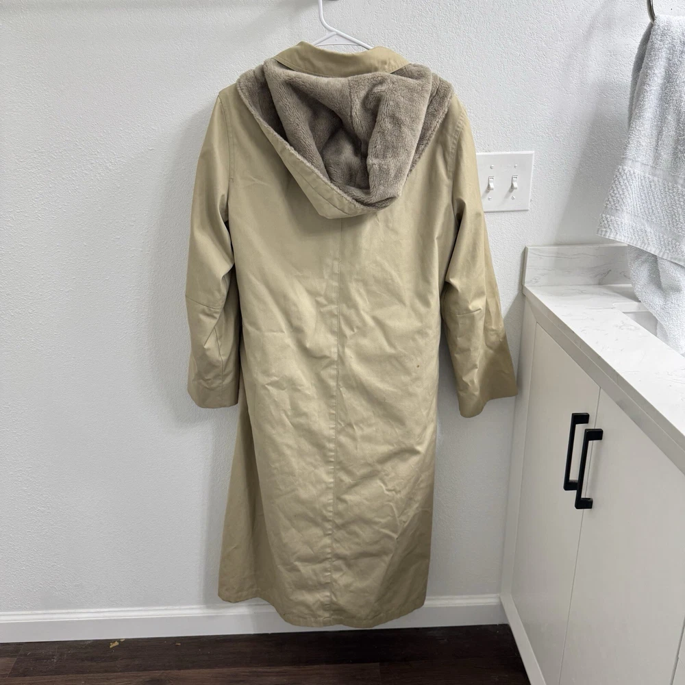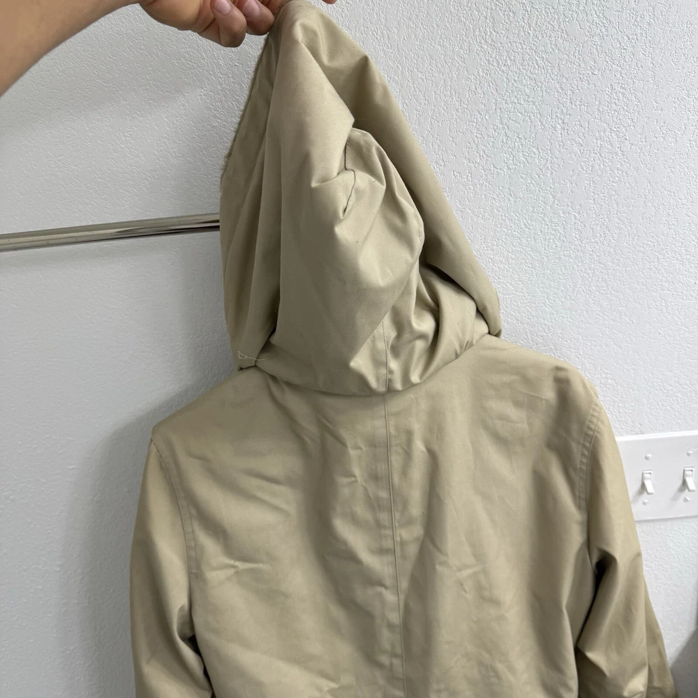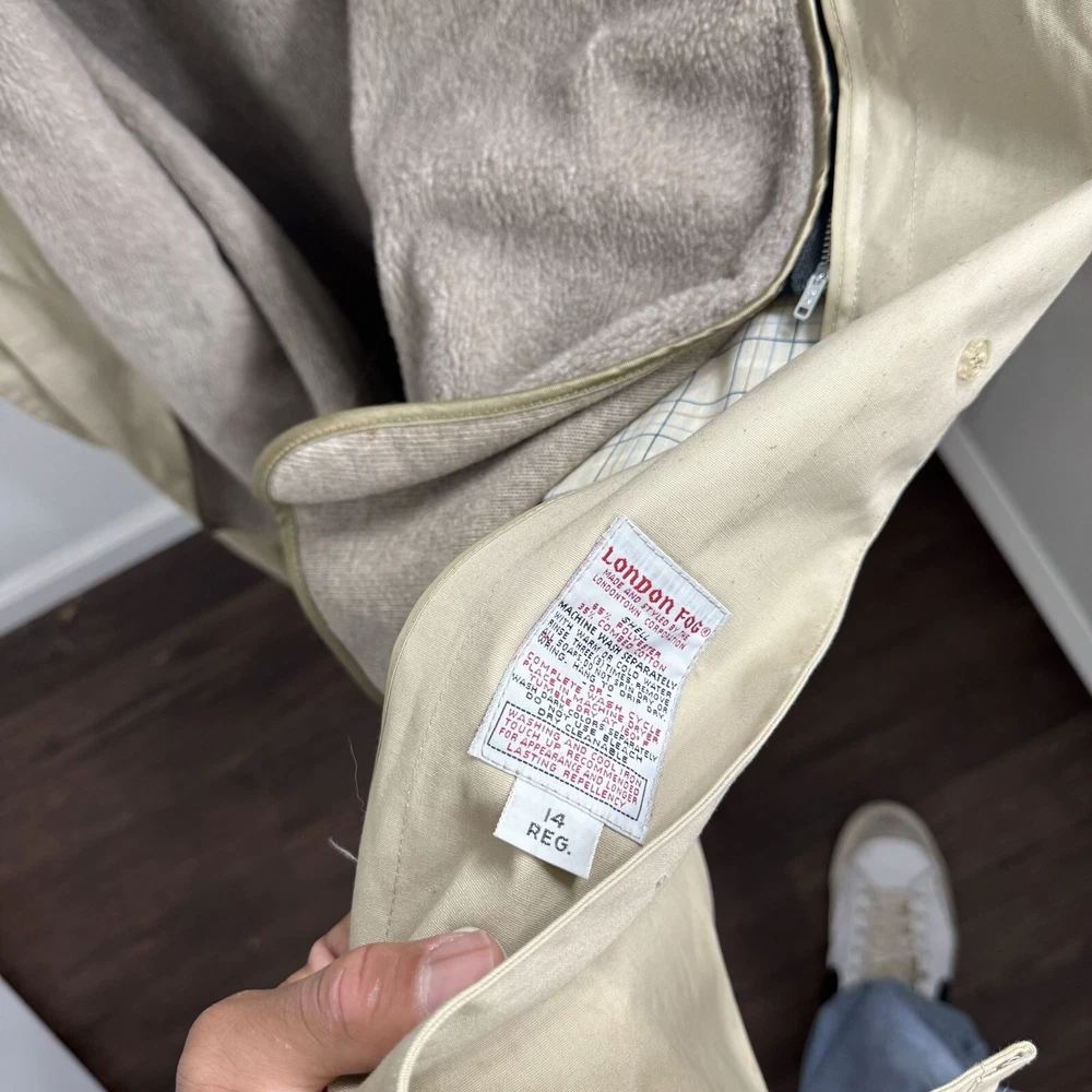 Elevate your rainy day wardrobe with this stylish London Fog Towne Trench Coat. Crafted from a durable cotton blend, this beige coat features a zip closure and removable hood for versatile wear. The outer shell material provides long-lasting protection against the elements, while the zip closure ensures a secure fit. Ideal for women who love practical style, this size 14 coat boasts a range of features including a removable hood and zip out lining for added warmth. The classic trench coat design is perfect for any occasion, from a casual day out to a more formal event. Upgrade your rainy day ensemble with this must-have coat from London Fog.