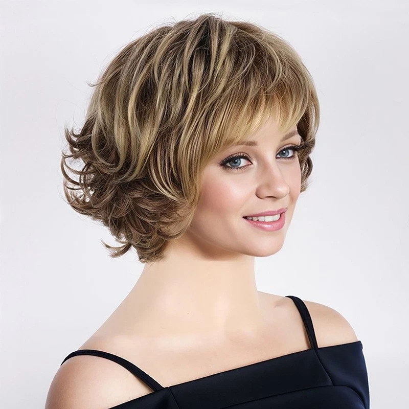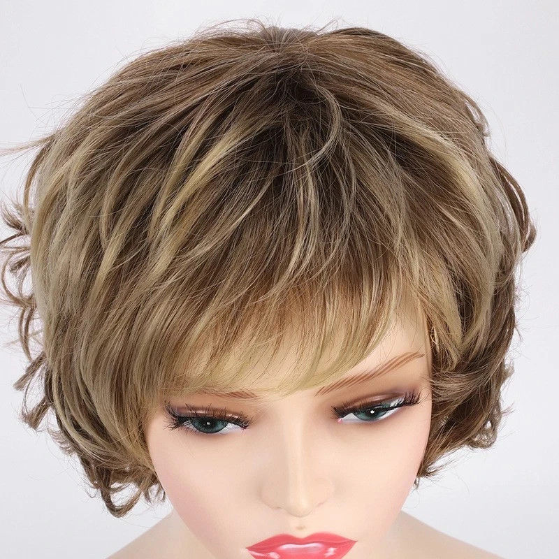 $ 32.19Women Dark Brown w/Gold Highlight Ombre Shoulder Length Curly Hair Wig&