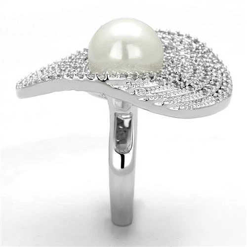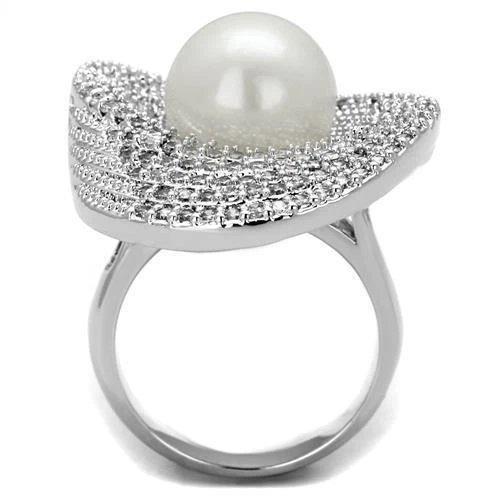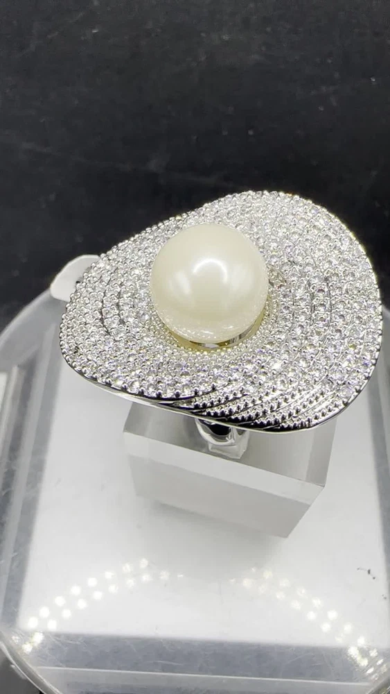 PLEASE NOTE THIS IS A CUSTOM MADE RING AND WILL TAKE UP TO 10 WORKING DAYS TO BE MADE QUIET OFTEN SOONER .WHEN LEAVING FEEDBACK PLEASE BE FAIR ON THE DISPATCH TIME AS WE HAVE STATED THIS RING Total pure quality Features A large Designer Ring flawless sparkling Simulated Diamonds Non stop Sparkle ,Pave set , no glues !With a Cream Pearl in the middle High Quality Finished in Rhodium part of the platinum family , durable