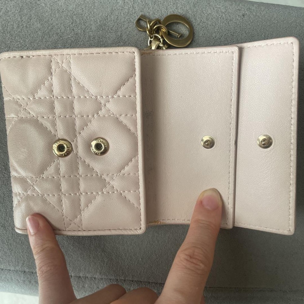 Absolutely love this Lady Dior wallet! The pink lotus design is stunning, and the trifold style is so practical. The craftsmanship is impeccable—soft leather, perfect stitching, and a luxurious feel. It fits everything I need without being bulky. Shipping was smooth, and the item arrived in perfect condition. Definitely worth every penny—feels like a true designer piece!