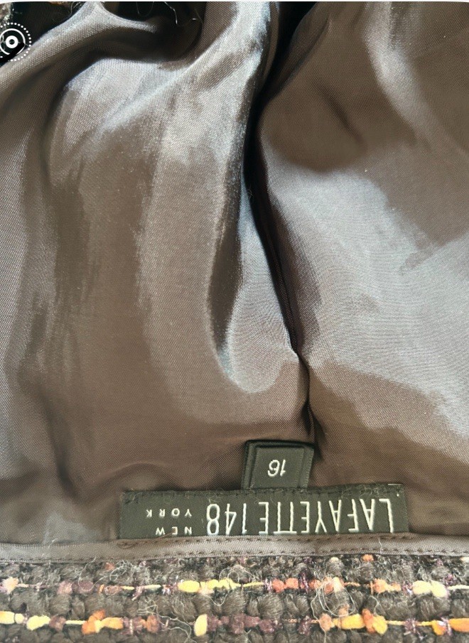 The Lafayette 148 skirt is a luxurious addition to any woman's wardrobe. Made from a cozy alpaca tweed blend, this size 16 skirt is perfect for adding a touch of sophistication to any outfit. With its brand name known for quality and style, this skirt is sure to elevate your look with its timeless design and high-quality fabric. Perfect for both casual and formal occasions, this skirt is a versatile piece that will become a staple in your closet. Flat lay measurements 19 inches side to side at waist 27 inches top to bottom Fully lined No flaws Inv s-2