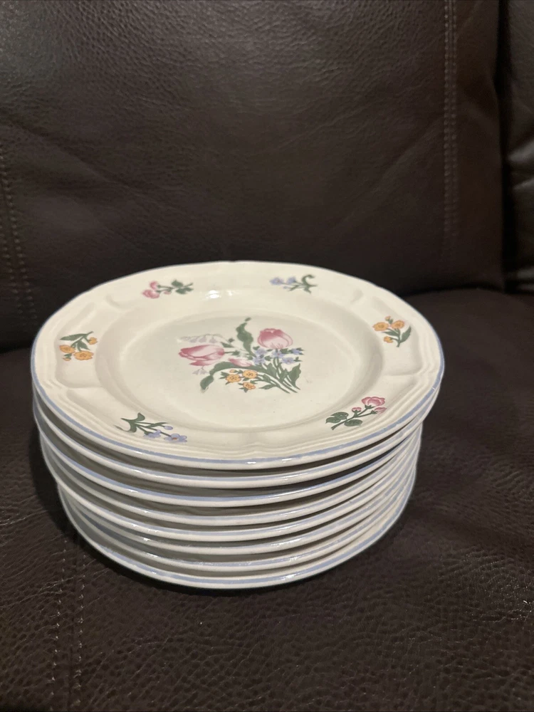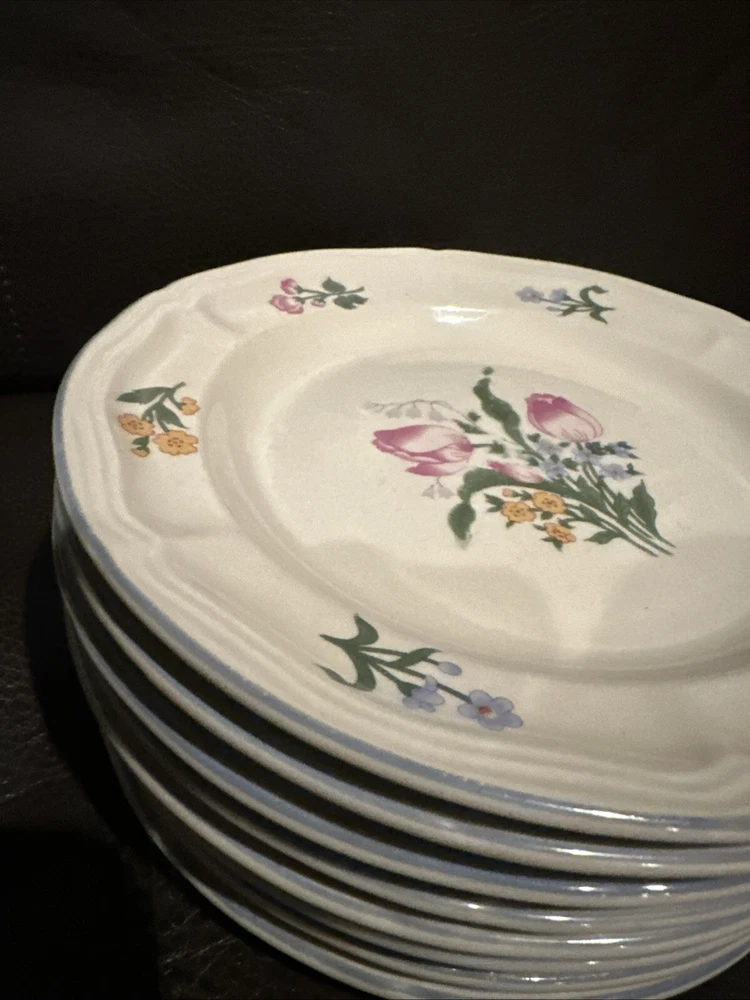 Lafayette by Gibson Tulip Floral 7-5/8" Salad Lunch Plates (Set of 8)
