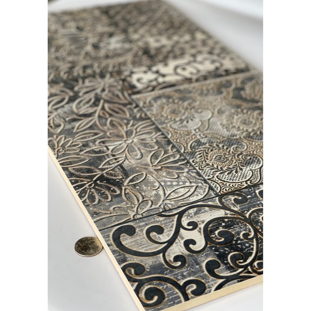 We bring a new Ceramic collection from India. These design patterns will bring a unique look to your home making a statement in any part of your room you choose to put them in. 100% waterproof. Be advised, Sample is NOT a full 12x24 tile.Brand: Moroccan Mosaic and Tile House Type/style: Wall/Floor Tile Materials: Ceramic Dimensions: 12 inches wide x 24 inches long x 0.25 inches thick (each) Square footage per box: 10 sq. ft. per box Installation: Professional installation is recommended Pack/case of: 5 tiles per box Disclaimers & Disclosures: Please be aware that if you order more than 151 pounds of tile or flooring, the order may need to be shipped Freight and our Oversized Item Delivery/Return policy will apply. Country of Origin: India Free Shipping Over $49.99* Details Lagos 12 x 24 Ceramic Tile for Wall & Floor in Dark Grey Product Description: We bring a new Ceramic collection from India. These design patterns will bring a unique look to your home making a statement in any part of your room you choose to put them in. 100% waterproof. Be advised, Sample is NOT a full 12x24 tile. BrandMoroccan Mosaic and Tile House Type/styleWall/Floor Tile MaterialsCeramic Dimensions12 inches wide x 24 inches long x 0.25 inches thick (each) Square footage per box10 sq. ft. per box InstallationProfessional installation is recommended Pack/case of5 tiles per box Disclaimers & DisclosuresPlease be aware that if you order more than 151 pounds of tile or flooring, the order may need to be shipped Freight and our Oversized Item Delivery/Return policy will apply. Country of OriginIndia