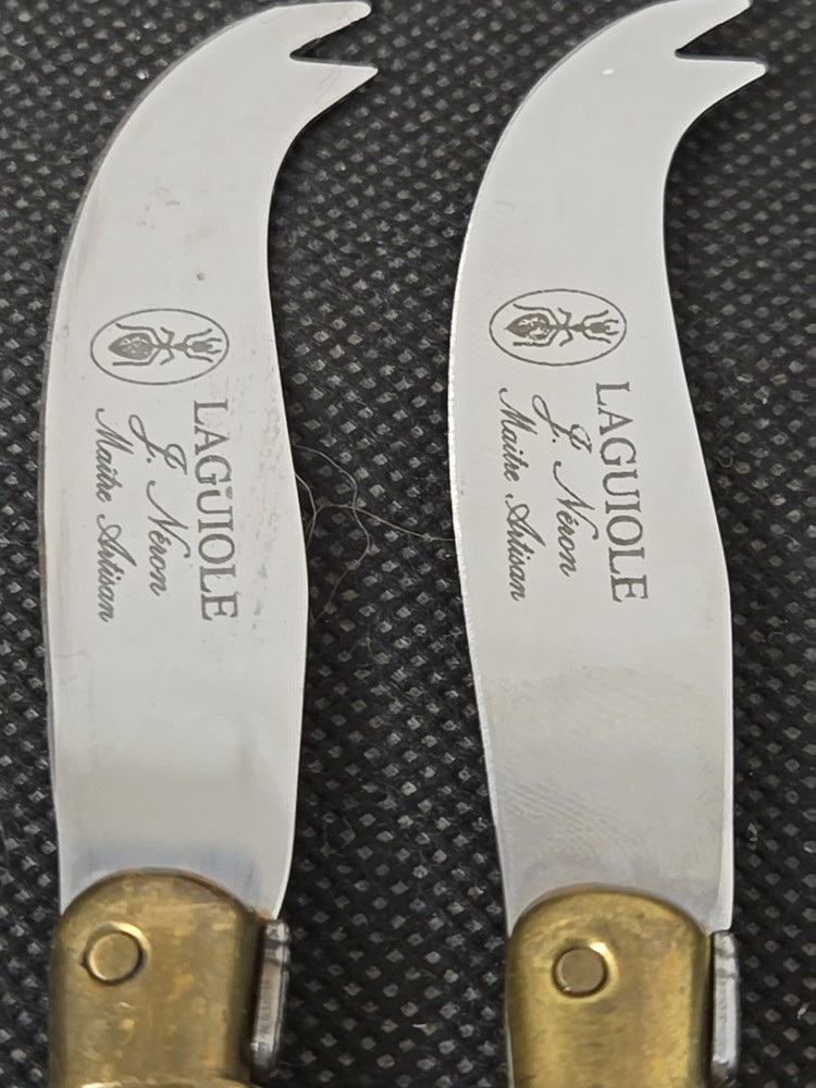 Laguiole Cheese Knives Set Of 2 Jean Neron Handcrafted Brass & Resin Handles France