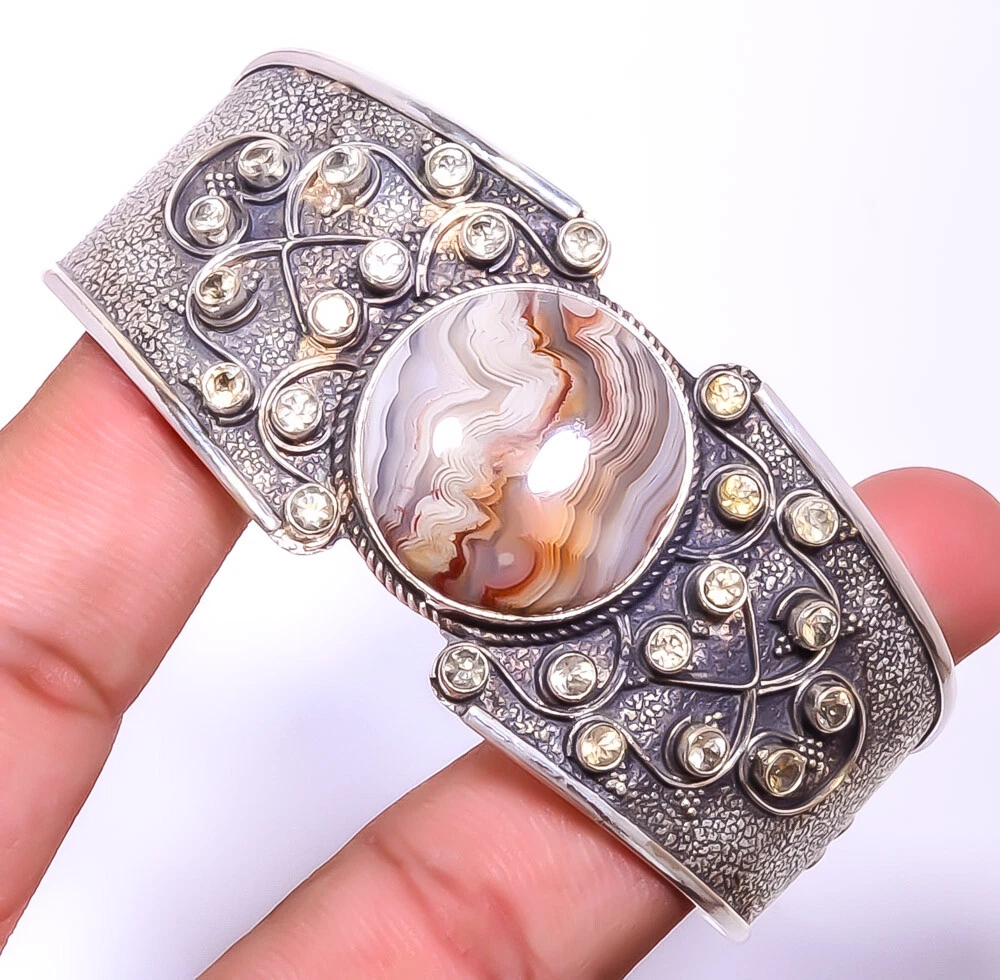 Charm Type As Seen in Picture Theme Beauty Main Stone Depth As Seen in Picture Main Stone Length As Seen in Picture Main Stone Width As Seen in Picture Seller Warranty Yes Shape As Seen in Picture Sizable As Seen in Picture Wholesale Yes SKU C1748-13 Signed Yes Unit Quantity 1 Unit Type Unit Type Cuff Style Cuff Metal Sterling Silver Metal Purity 925 Parts Per 1000 Base Metal Sterling Silver Material Gemstone. Stone Main Stone Agate Main Stone Shape As Seen in Picture Main Stone Creation Natural Main Stone Color Same As Picture Main Stone Treatment Natural Secondary Stone Citrine Item Length Adjustable Features Adjustable Brand Unbranded Customized No Country/Region of Manufacture India Country of Origin United States Cut Grade Very Good Setting Style collet setting Number of Diamonds As Seen in Picture Gemstone Clarity Grade Slightly Included Diamond Color Grade Not Applicable Diamond Clarity Grade Not Applicable Colored Diamond Intensity Not Applicable Color Silver Closure Open Closure Chain Type Not Applicable Certification 100% Genuine Guaranteed Total Carat Weight 163 ctw Occasion Christmas, Birthday, Anniversary, Engagement, Wedding, Valen Shipping & Handling - Charge - 1st item-5.90 And Additional item-1.90 Handling Time - 1 Days . Delivery Time - 2 TO 3 DAYS. Shipping Service - USPS First Class Package 2 -3 Days. Returns - 1.We offer a 100% Money Back Guarantee minus shipping for 30 days after receiving the Item / item's. 2..The item must not be altered or damaged in any way shape or form. 3.Upon receiving these items your payment will be refunded. 4.Email us for return instructions before sending merchandise back. 5.Please allow up to 1 business day for all returns to receive credit. 6.Sizing does not affect the return policy. Payment - We accept PayPal for Payment ,should made with in 14 days once buying or winning done , in case of late information expected .