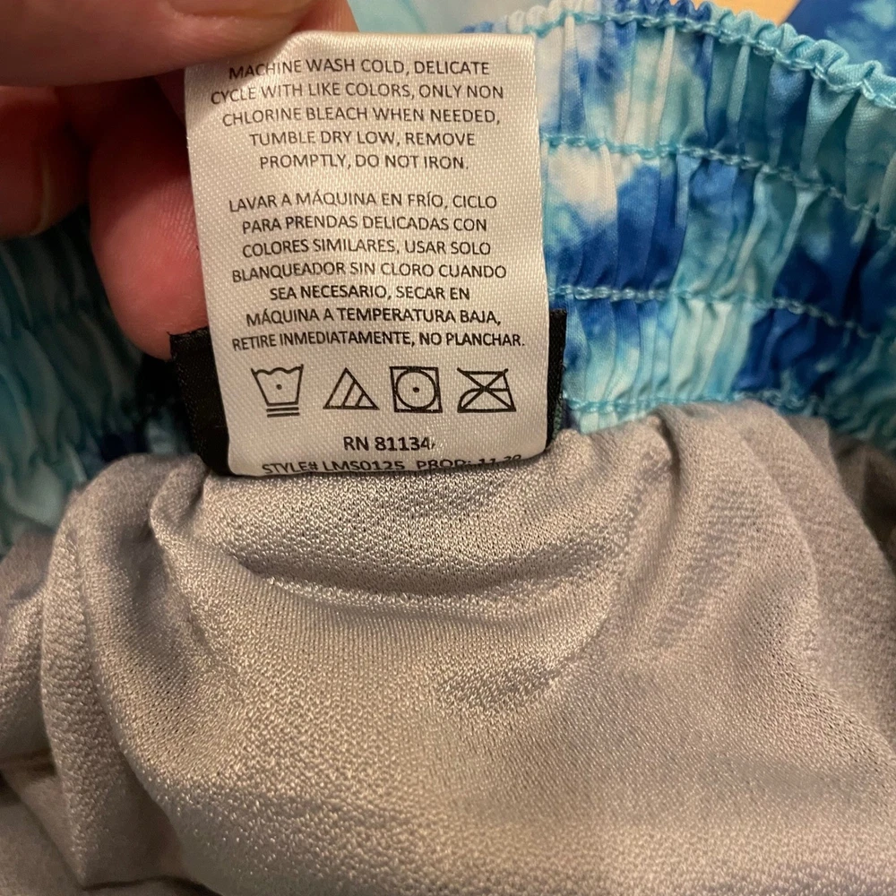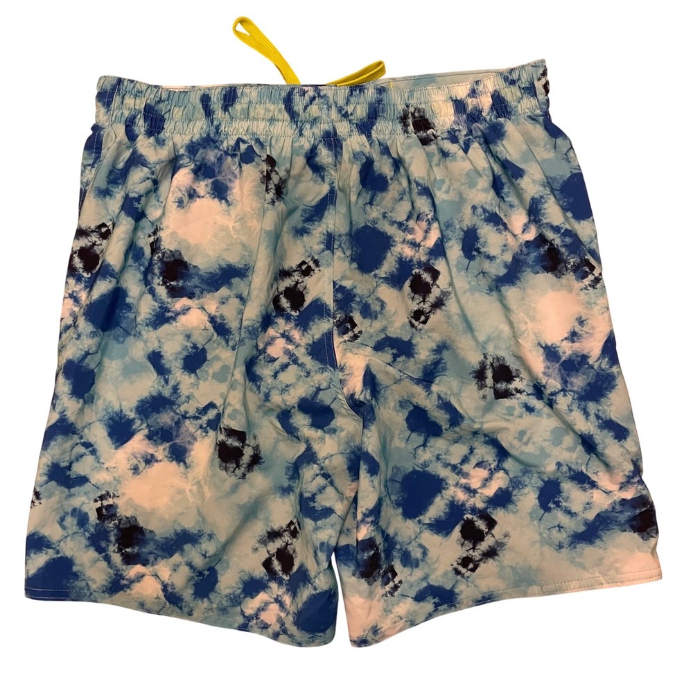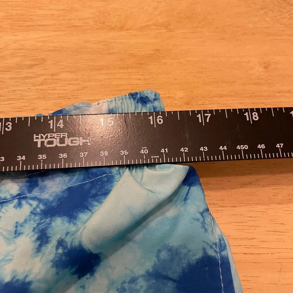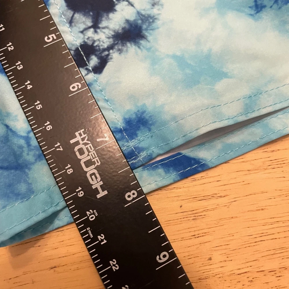 Dive into summer fun with these eye-catching Laguna swim trunks. A vibrant blue tie-dye pattern creates a splashy, modern look, perfect for making a statement at the beach or pool. The comfortable elastic waistband with a neon yellow drawstring ensures a secure and adjustable fit, while the convenient zipper pocket keeps your essentials safe and sound. These swim trunks are designed for both style and practicality, allowing you to move freely and confidently. Picture yourself lounging by the pool, playing beach volleyball, or enjoying a casual day at a water park in these stylish and functional swim trunks. Measurements: • Waist: 15.5 in • Inseam: 7.5 in Color: Blue Type: Bottom Swim Bottom Style: Swim Shorts Department: Men Pattern: Tie Dye Features: Elastic Waist, Drawstring, Pockets, Quick Dry Material: Polyester, Spandex Performance/Activity: Surfing, Recreational Keywords: mens swim trunks, swim shorts, blue tie dye, drawstring, zipper pocket, beachwear, pool attire, summer fashion, Laguna, large, swimwear, mens clothing, vacation, resort wear The Designer Clothing Exchange "Great Brands, Great Prices" - NEW ITEMS DAILY 5 STAR SELLER - FAST SHIPPING DAILY - AMBASSADOR II