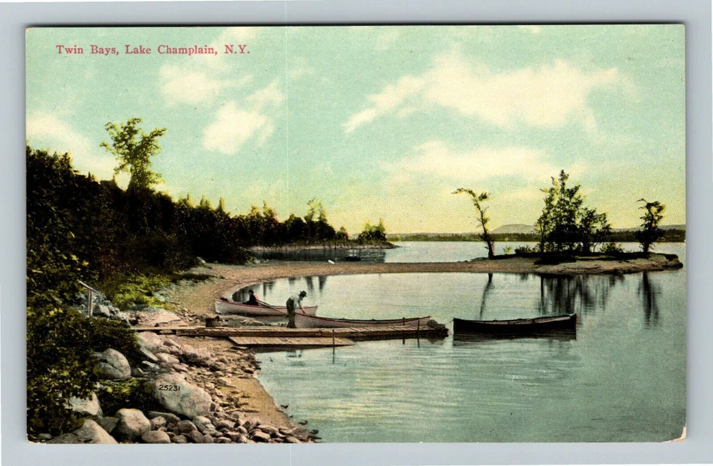 Lake Champlain NY-New York Twin Bays Vintage Souvenir Postcard