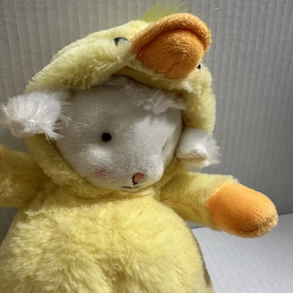 This plush stuffed animal is a 9-inch Lamb in a Duck Costume designed by Animal Adventure. The adorable toy features a small size, perfect for cuddling and playing. The combination of a lamb character in a duck costume adds a fun and whimsical touch to this stuffed animal, making it a unique and charming addition to any collection of plush toys.