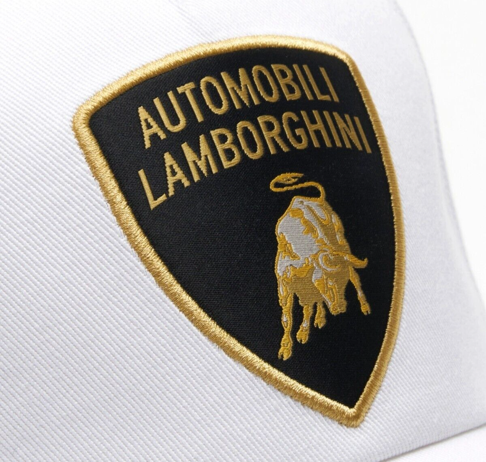 Lamborghini Gold Shield Cap White Cotton cap, customized with an embroidered shield logo.
