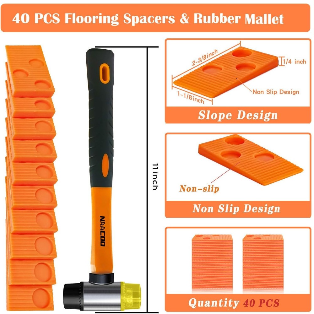 Free eBay listing template designed by dewiso.com NAACOO Laminate/Vinyl Flooring Tools, Heavy Tapping Block for Vinyl Plank Floor - Knock 1-2 Times, Heavy Pull Bar, 40pc Flooring Spacers, Rubber Mallet - 4 in 1 Floor Installation Kit FREE AND FAST SHIPPING! About this item 🇺🇸【NAACOO Heavy Professional Set】A unique laminate flooring installation kit on the market. Different from other suits, Our kit are more advanced than other kits. Heavy Tapping Block needn't use mallet, push tongue and groove wood floor together creating a tight seam. Match Spacers create a uniform gap between the wall. Heavy Pull Bar has super Long service life work close to a wall, corner, closets or in tight spaces, closing the gaps and seams in laminate floors without causing damage. 🇺🇸【Heavy Big Tapping Block】Made of HDPE-"High Density Polyethylene”.Optimum balance and the ideal weight 2.7 LB, just rap 1-2times together planks into place. Needn't cooperate mallet - avoids finger smashing. More faster, more accurate, more safe! Large wood ergonomic handle - Non-slip, Easy to grip handle, easy to release force. 🇺🇸【Heavy Duty Pull Bar】Crafted from 3/8 Inch Carbon plate steel,different from other ordinary pull bar,ours has super long service lifehigh strength, corrosion resistance, rust-resistant.①Solid Square Steel Block - provides convenient point for hammer striking.②T-shape head - made of steel angle, "L" steel angle provides Accurate fit that will not damage the tongue and tenon. ③Designed beveled - can into tight spaces and pry them. ④Fully felted bottom - to protect your floor from scratches. 🇺🇸【Double-Faced Mallet】Made of high carbon steel with a non-slip rubber grip handle. The one side is a rubber hammer,prevent damage to the floor ,other side is a solid hammer, the handle forged into the hammerhead, which is powerful to use and will not fall off. No any issue about the head of mallet fell apart and handle bent.Match heavy duty pull bar to use. 🇺🇸【40pc Wedge Flooring Spacers】The kit comes with 40 pieces of flooring spacers which are "slope design" and "non-slip design". The spacers have “serrated” edges that lock them into the correct position once a board is placed against them. The spacers are easy to insert and remove from the floor, making them a breeze to work.Match use tapping block in kit. Product We offer a 30-Day Return Policy on items which you are not completely satisfied with. You have the option for a full-refund or an exchange of the item. No returns are available on items shipped outside of the US . Shipping We offer Free Shipping to the US and ship within 2 business days of payment, usually sooner. We use UPS express shipping. That's why your products are usually delivered within 3 days . Contact We try our very best to make sure every customer is completely satisfied. If there's a problem , message us! We're happy to help. 24/7 live chat available.