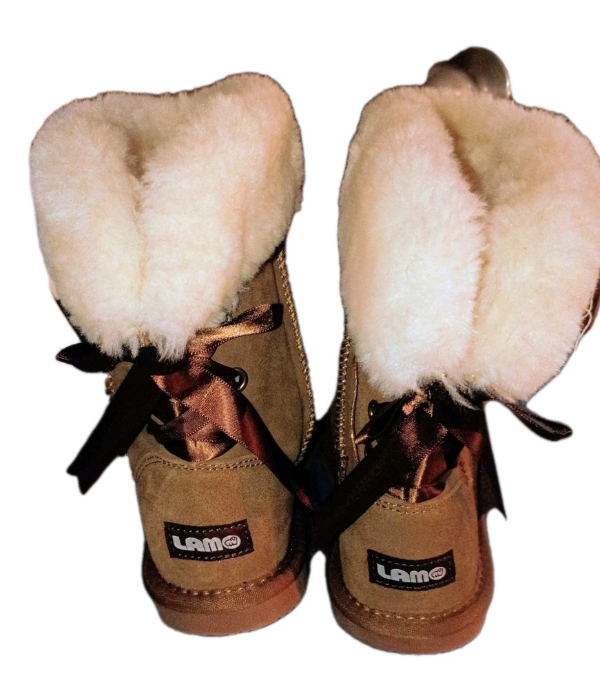 The Lamos Fur Lined Suade Boots in Girls Size 3 are stylish and warm snow boots designed for young girls. These brown boots feature faux fur lining and ribbon detailing, giving them a fashionable and cozy appeal. With a standard shoe width and a wrap model, these boots are perfect for keeping little feet comfortable and snug during the colder months. The Lamo brand ensures quality and durability, making these boots a practical and stylish choice for any young girl's winter wardrobe.