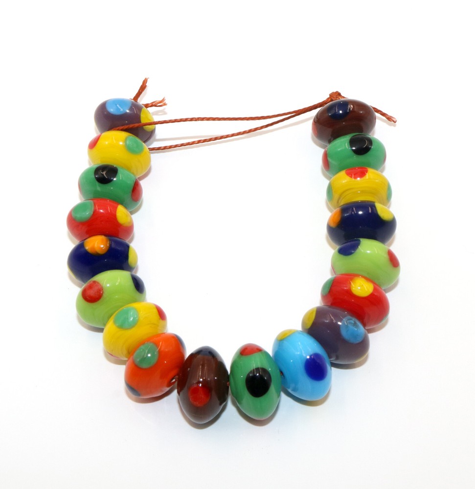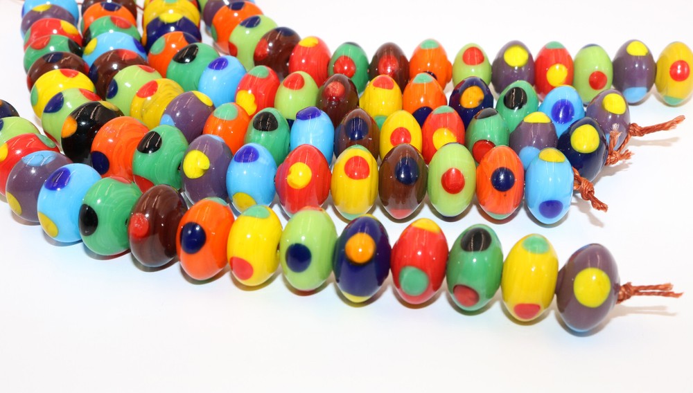 Product Details: Lamp Work Glass Beads. Bead Size: 11 x 16mm Rondelle Color: Multi-Color Quantity: 5 Strands (90 beads) Condition: New Use: Decoration and Jewelry making like Necklace, Bracelets, Earrings etc. SHIPPING We arrange hassle free shipping and the couriers will give you door delivery. CONTACT US For any further information, kindly contact us. We will be happy to assist you. THANK YOU FOR YOUR CO-OPERATION AND SUPPORT