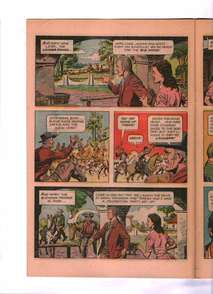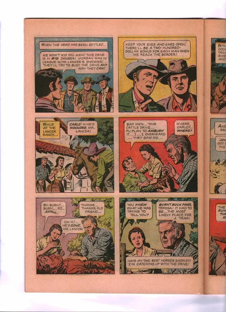 U. S. Bidders ONLY for this item. No International Shipping. LANCER #2 Graded Very Fine- June 1969 Dell Comics - Silver Age A Gold Key TV Classic adapted from the CBS TV series that aired from 1968 - 1970 Starring Wayne Maunder, Andrew Duggan, James Stacy, Elizabeth Baur and Paul Brinegar Written by Dick Wood Illustrated by Luis Dominguez Wayne Maunder, Andrew Duggan and James Stacy Photo Cover * * * * * * * THE GENERATIONS COLLECTION FLAGSTAFF, ARIZONA The Generations Collection is an original owner comic book collection compiled over 8 decades by 3 generations of the Gipson family. This nearly 40,000 issue collection contains comics from 1940 to present day. Note: Not all of the comics that we sell are from the Generations Collection. Generations Collection comics can be identified by an ORANGE grading sticker on the upper left corner of the comic storage bag. All Golden, Silver and select Bronze Age comics from the Generations Collection come with a signed and serialized Certificate of Authenticity. All packages are insured for up to $100.00 at no additional charge. If you desire additional coverage, contact the seller before making payment. All comics and magazines come individually bagged and boarded. Shipped in padded envelopes & sandwiched between 4 pieces of cardboard. MAXIMUM U.S.A. SHIPPING IS $8.95 NO MATTER HOW MANY COMICS YOU BUY! (Excludes CGC & PGX Graded Comics) I will combine shipping costs for winners of multiple auctions. Combined shipping costs apply to auctions won during the SAME calendar week. U. S. Bidders ONLY for this item. No International Shipping. Track Page Views With Auctiva's Counter