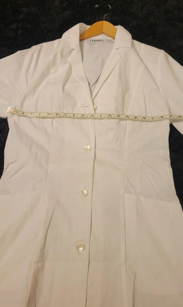 Professional and practical lab coat featuring button-front closure and two front pockets. Ideal for medical professionals and healthcare workers. • Button-Front Closure • Two Front Pockets • Long Sleeves • Professional Design See Photos for Measurements Size: 12 Condition: Pre-Owned Like New Please see all photos as they are part of the description. Always open to reasonable offers!