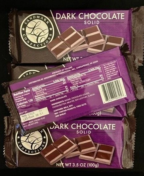 Landmark Confections DARK CHOCOLATE Solid Candy Bars QUANTITY: "4" bars SIZE: Large 3.5 ounce each bar CONDITION: Brand New/Manufacturer Sealed Packaging