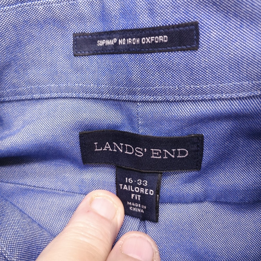 Scroll down to view item description, details, condition, and shipping information . Each pre-owned item is professionally cleaned prior to shipment and it arrives clean, fresh, and ready to wear. Lands’ End blue Supima cotton Oxford button-down shirt with a tailored fit and classic versatile style. Designed with long sleeves and a button-down collar, this men’s 16 / 33 shirt pairs easily with dress pants, chinos, or denim for casual or business-casual wear. Gently pre-owned and in excellent condition with no stains, holes, or excessive wear. Item Details Brand: Lands’ End Style: Oxford Button-Down Shirt Size: Men’s 16 / 33 (Neck / Sleeve) Color: Blue Material: Supima Cotton Fit: Tailored Sleeve Length: Long Sleeve Pattern: Solid Features: Non Iron, Pockets Closure: Button Occasion: Casual, Business Garment Care: Machine Washable Condition: Pre-owned, excellent condition with no stains, holes, or excessive wear. Features Premium Supima cotton with comfortable hand feel Oxford classic styling suitable for casual or business casual wear Tailored fit for a cleaner silhouette Button-down collar for versatile layering Long sleeves suitable year-round Shipping Ships next business day from the United States with tracking. Carefully inspected, photographed, and stored in a smoke-free environment. Approximate Measurements (Laid Flat): Pit to Pit (Chest Width): 23 inches Sleeve Length (Shoulder to end of Sleeve): 23 inches Overall Length (Top of Shoulder to Bottom Hem): 31 inches Return Policy Changed your mind? No problem. We accept returns within 30 days for any reason, including sizing or satisfaction. Items must be returned in the same condition as originally sent. Cancellation Policy Orders may be canceled or returned within 30 days of delivery, provided the item is returned in the same condition it was shipped. Shipping Policy Orders are processed within 1 business day of receiving payment Please confirm your shipping address at checkout - addresses cannot be changed once an order is placed All merchandise ships from the United States Every shipment includes USPS tracking, provided once the order ships Shipping is included in the total price We ship exclusively via USPS for reliable, consistent delivery Domestic & International Shipping We ship to all U.S. states and offer worldwide international shipping. Your Feedback Matters Positive feedback is greatly appreciated and helps support our small business. If you have a good experience, we would be grateful for your review. If there is any issue with your order, please contact us through eBay messaging before leaving feedback. We are easy to work with and committed to resolving concerns quickly and fairly. Condition Notice What you see is what you get. Please review all photos carefully for a clear and accurate view of the item's condition.