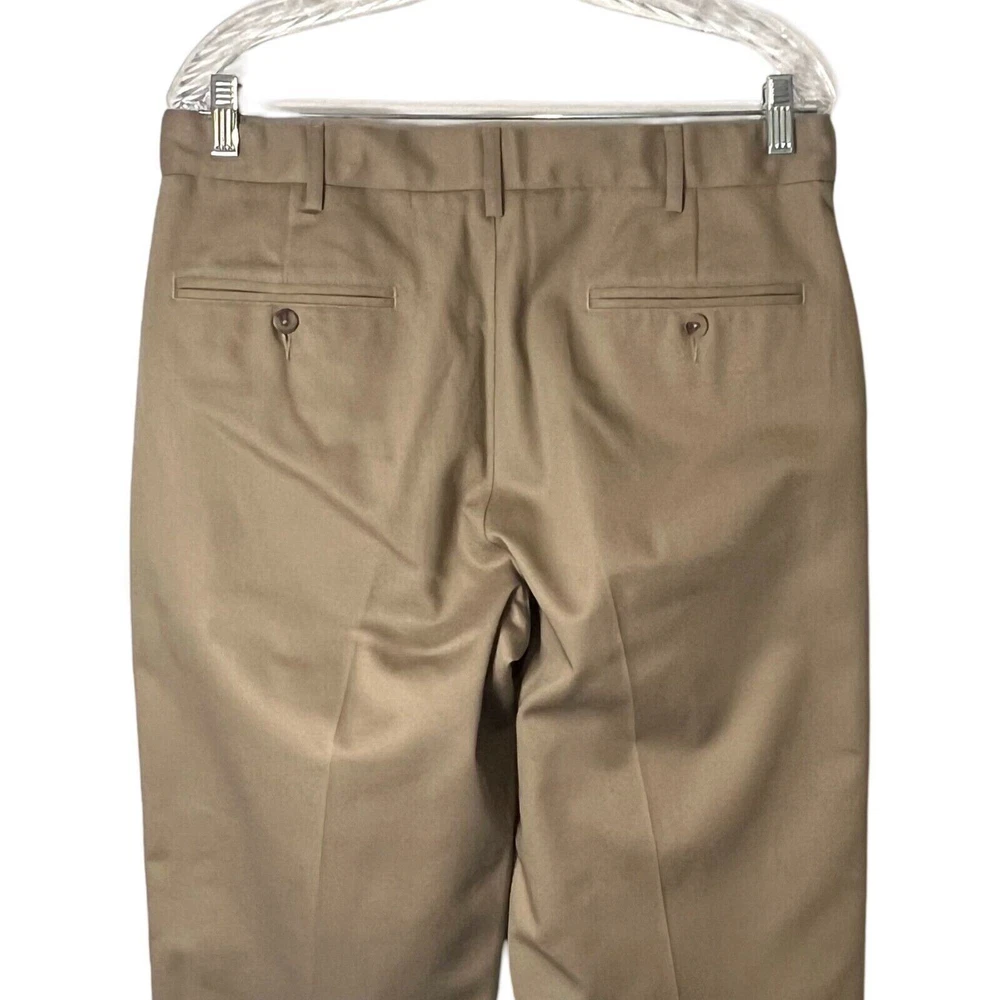 33" waist 30" inseam 11" rise Lands' End pants beige color solid pattern perfect for any occasion, whether it be a casual day out or a business meeting flat front straight leg style breathable cotton fabric slash pockets zip and button closure machine washable all items stored in smoke-free / pet-free home