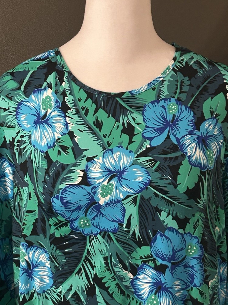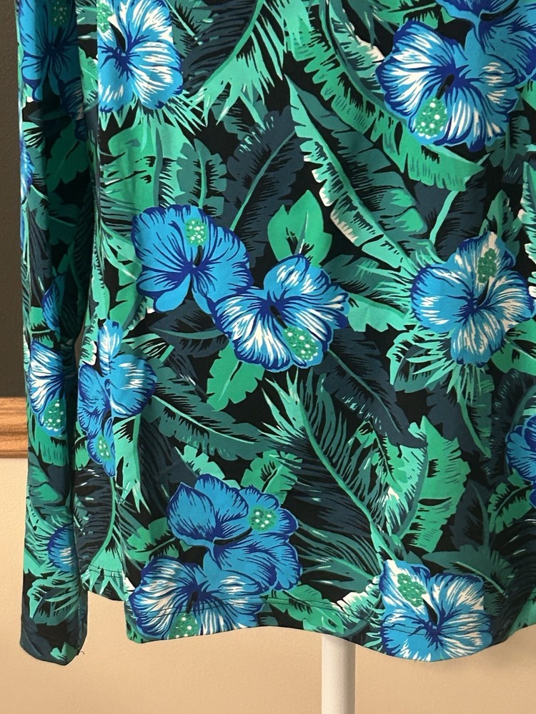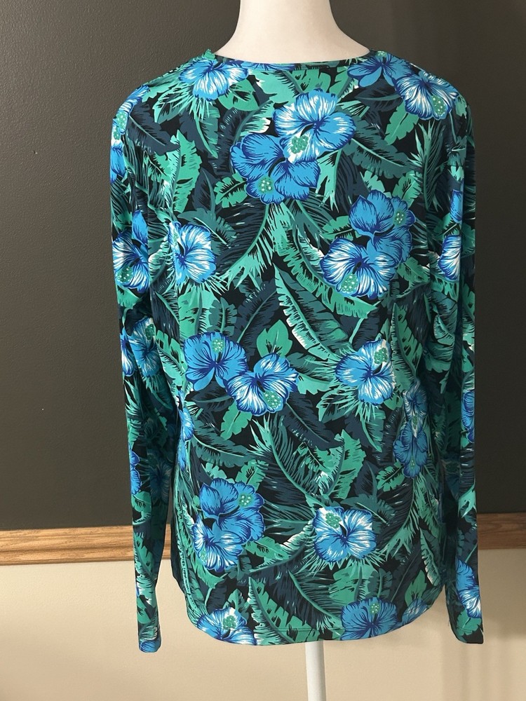 Lands End Rash Guard Top Swim Shirt Medium 10-12 Blue Green Floral UPF SUN Excellent pre-owned condition Length:25” Chest across:19.5” Long Sleeve Allows for stretch 50 UPF protection against UV rays Nice! BG25
