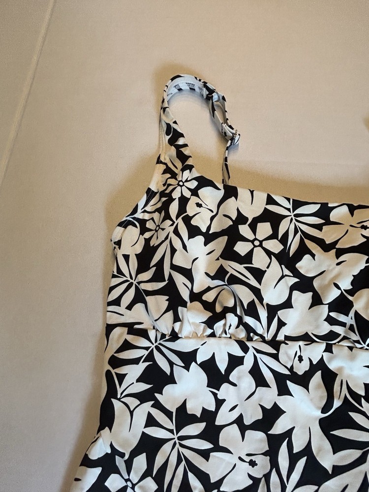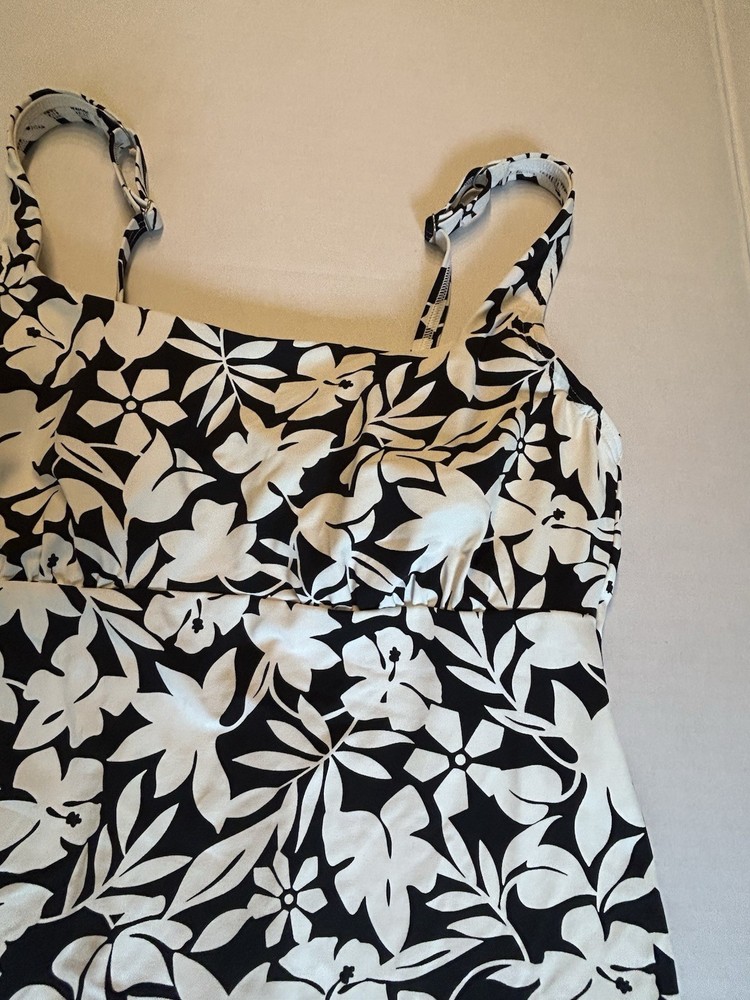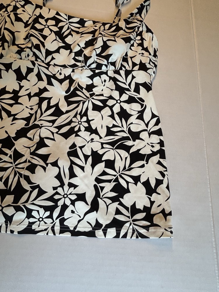 Lands End Swim Tankini Top Underwire Black White Floral UPF 50 Size 10 Excellent pre-owned condition Length:24” Chest across:16” Nice! BG10