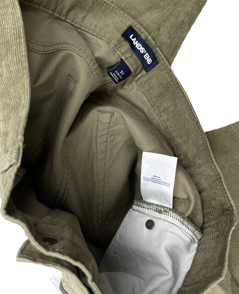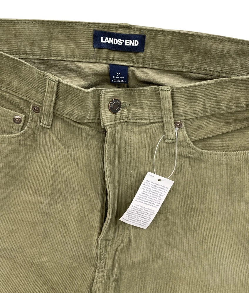 Lands' End Traditional Stretch Corduroy Olive Green Pants Men's W 31 x L 34 NWT