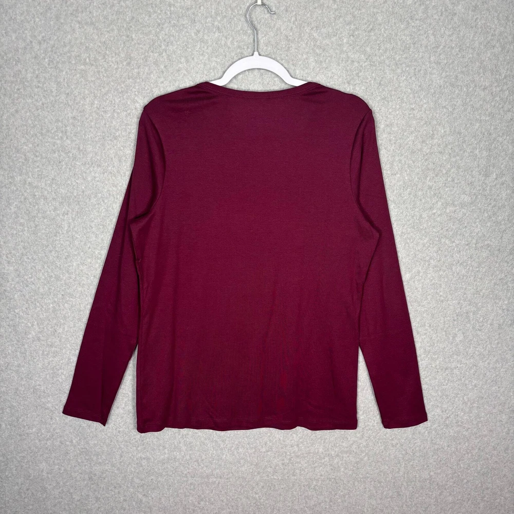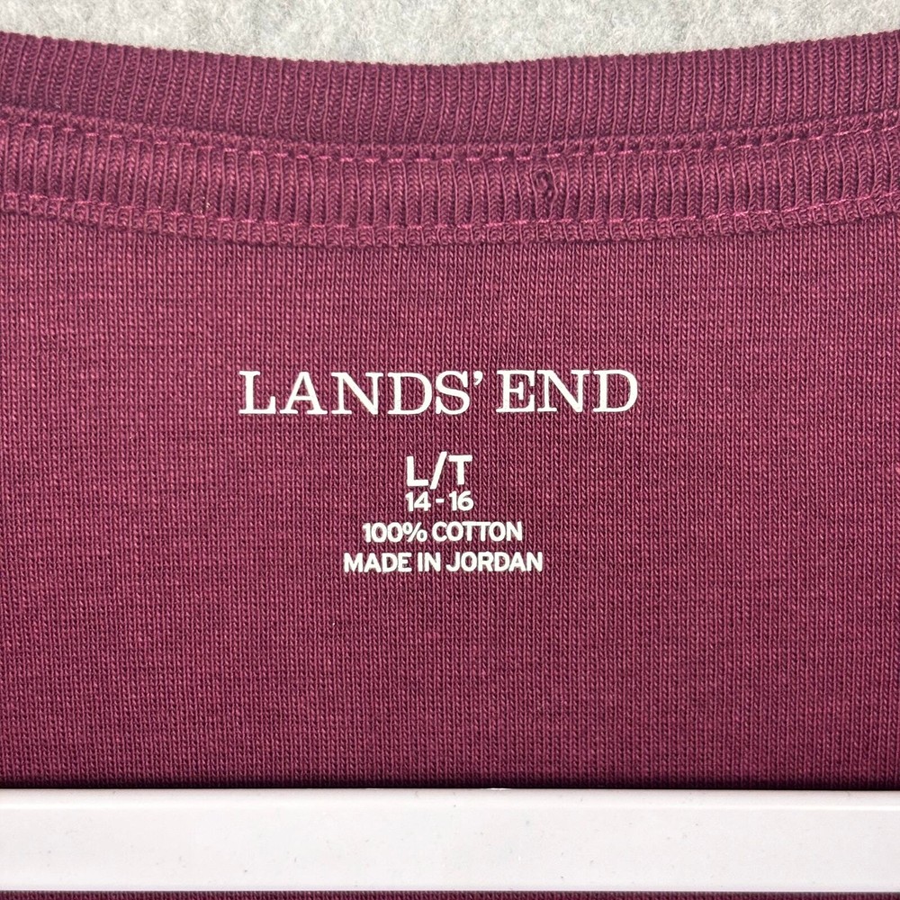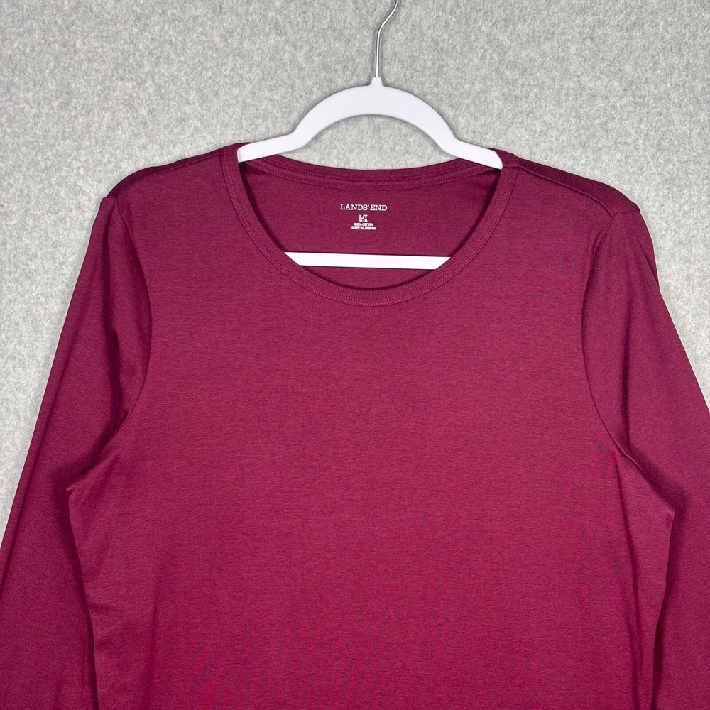 Lands End Shirt Womens Large Burgundy Cotton Basic Everyday Casual Layers 14-16 Crew Neck Long Sleeve EXCELLENT Pre-owned condition: No signs of wear and possibly new without tags SKU 5555 **Please see all pictures for full item condition, details, and approximate measurements** - Ships Same/Next Day, Professional Seller, Offers Welcome, Like or watch for price drops - Item in photos is exact item you will receive - I list new items daily, be sure to browse my store/closet for more items - Bundle pricing and combined shipping available for additional savings - Feel free to send a message
