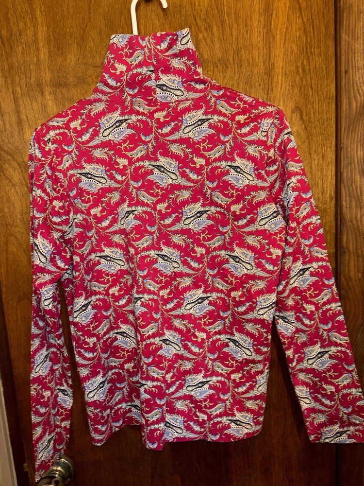 Add a touch of class to your wardrobe with this beautiful Lands' End red blouse. The blouse features a collared neckline and long sleeves with a classic/fitted design. It is made of comfortable cotton knit fabric and is machine washable for easy care. The solid red color makes it a versatile addition to your wardrobe that can be dressed up for a formal occasion or down for a casual day out. The blouse is a size small and fits regular, perfect for women of all sizes. It is not vintage or handmade and does not have any personalization. Take your style to the next level with this basic yet stylish blouse that is sure to become a staple in your wardrobe.