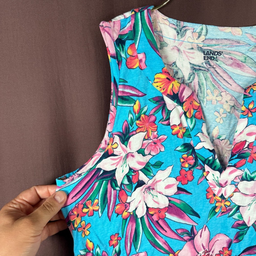 Lands' End Women's M, M-1X LONG Swim Cover-up Dress Cotton Jersey Sleeveless Turquoise Lily Palm This item is completely new but has a marker mark on it because previously it was used as a photo sample. Please DM what size you need. Thank you. Size Women's M Size Women's M Long Size Women's 1X Long