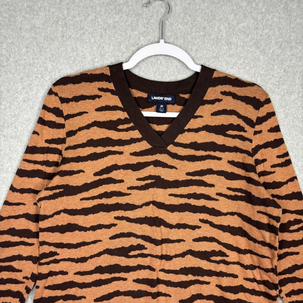 Fabric Type: Knit Theme: Classic, Preppy, Animals, Zebra, Outdoor Department: Women Type: Sweater Knit Style: Tight-Knit Seller Notes: “Pre-owned condition: minimal to no signs of wear, no stains or holes” Garment Care: Machine Washable Style: Pullover Neckline: V-Neck Fit: Regular Pattern: Animal Print Size: M Occasion: Business, Casual, Formal, Party/Cocktail, Travel, Workwear, Wedding Brand: Lands' End Color: Brown Material: 100% Cotton Size Type: Regular Features: Lightweight, All Seasons, Collarless, Stretch Sleeve Length: Long Sleeve Season: Fall, Spring, Summer, Winter